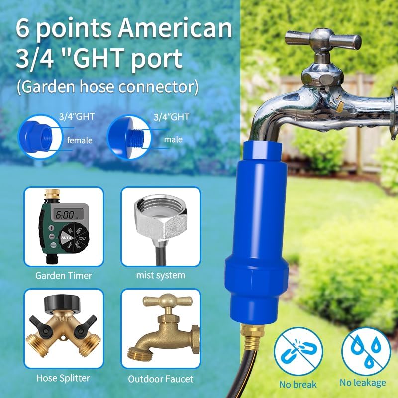 - 【Outdoor Misting System Protector】: Used with spray system, this filter particles as small as 5micron. It protects the outdoor misting systems by preventing potentially clogging solid sediments from passing through the system to solve nozzle corrosion, blockage problem, and deliver cleaner and safer water.