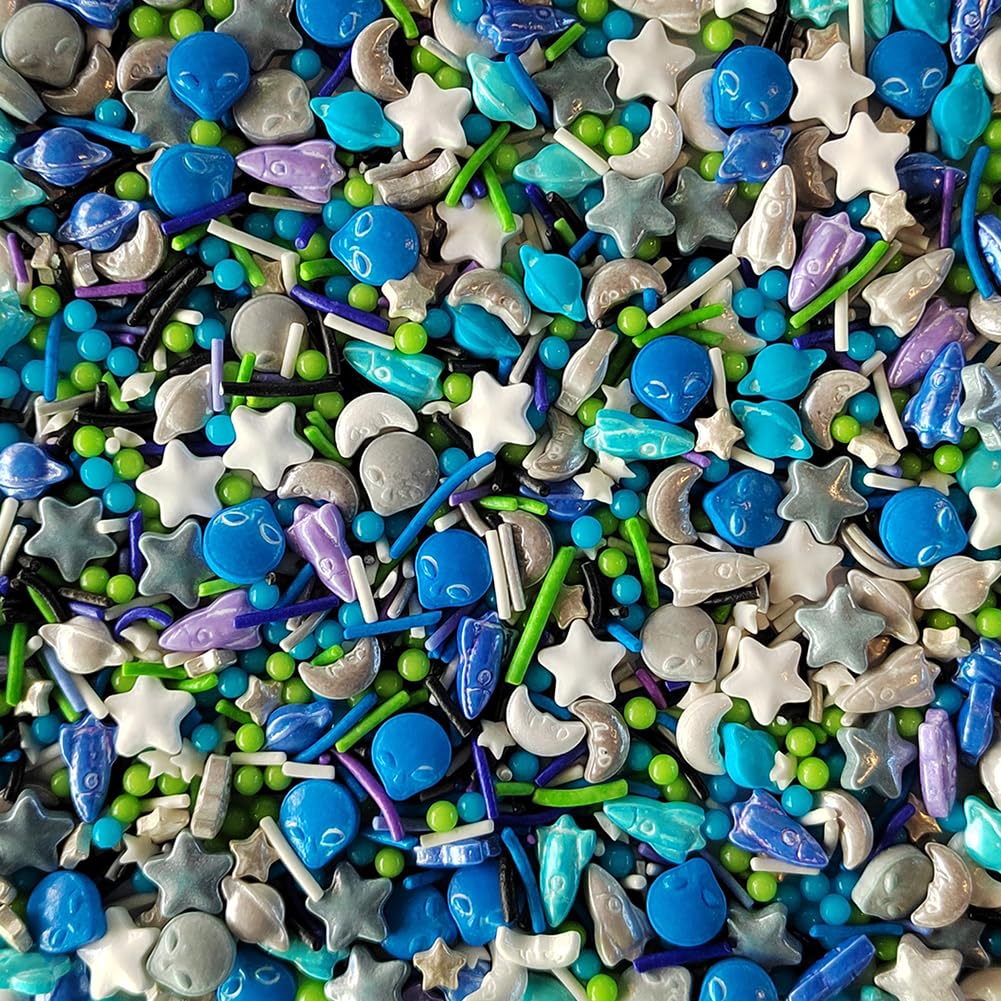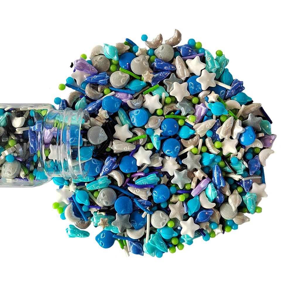 Homankit Edible Space Theme Sprinkles Alien Planet Moon Rocket Stars Sugar Sprinkle Baking Cake Cupcake Ice Cream Donut Decoration 3.53 Ounces