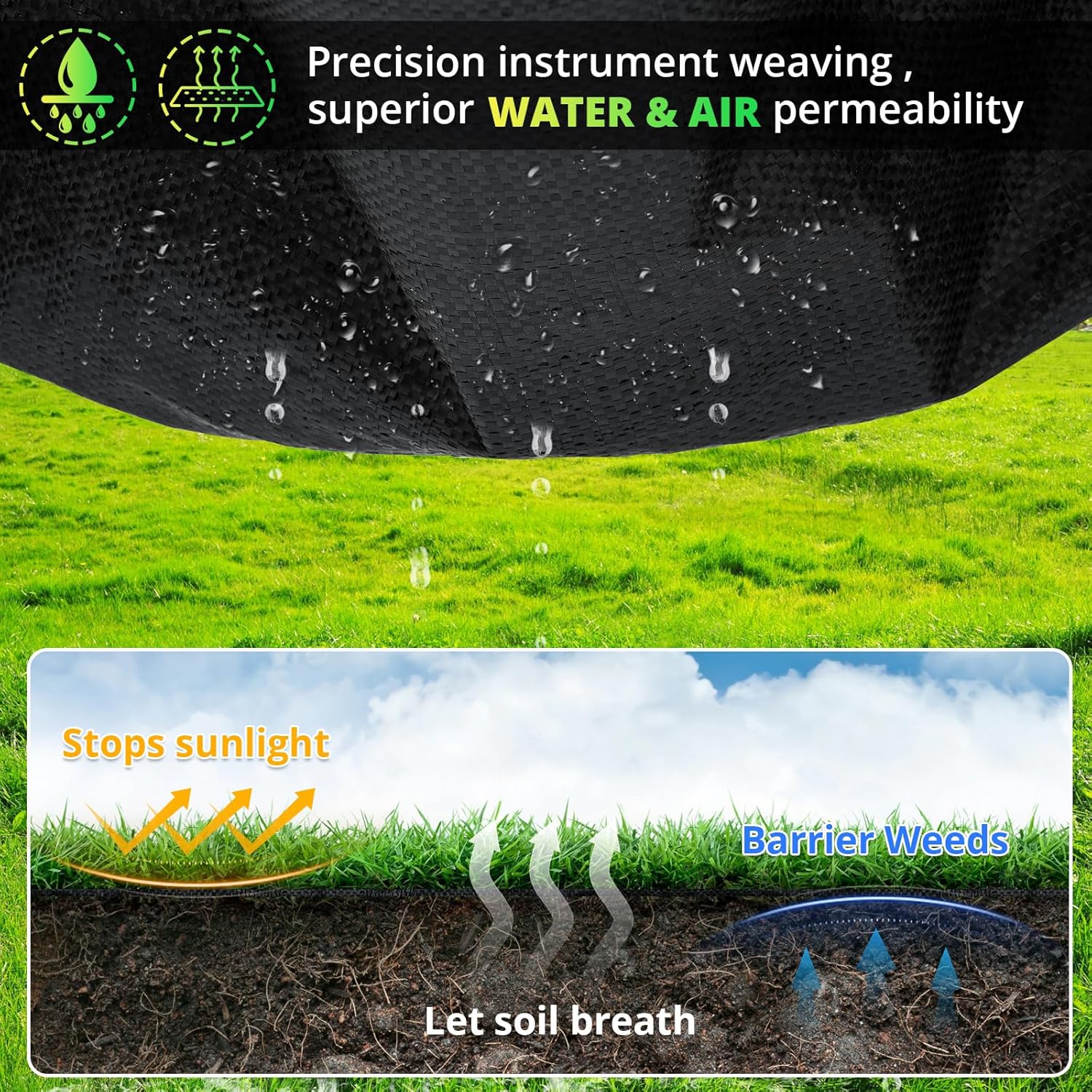 - 【Sustainable & Pollution-Free】We care about the environment, that’s why we designed our reusable landscape fabric. Promote greener, more sustainable gardening methods and create green homes by using our weed barrier fabrics.