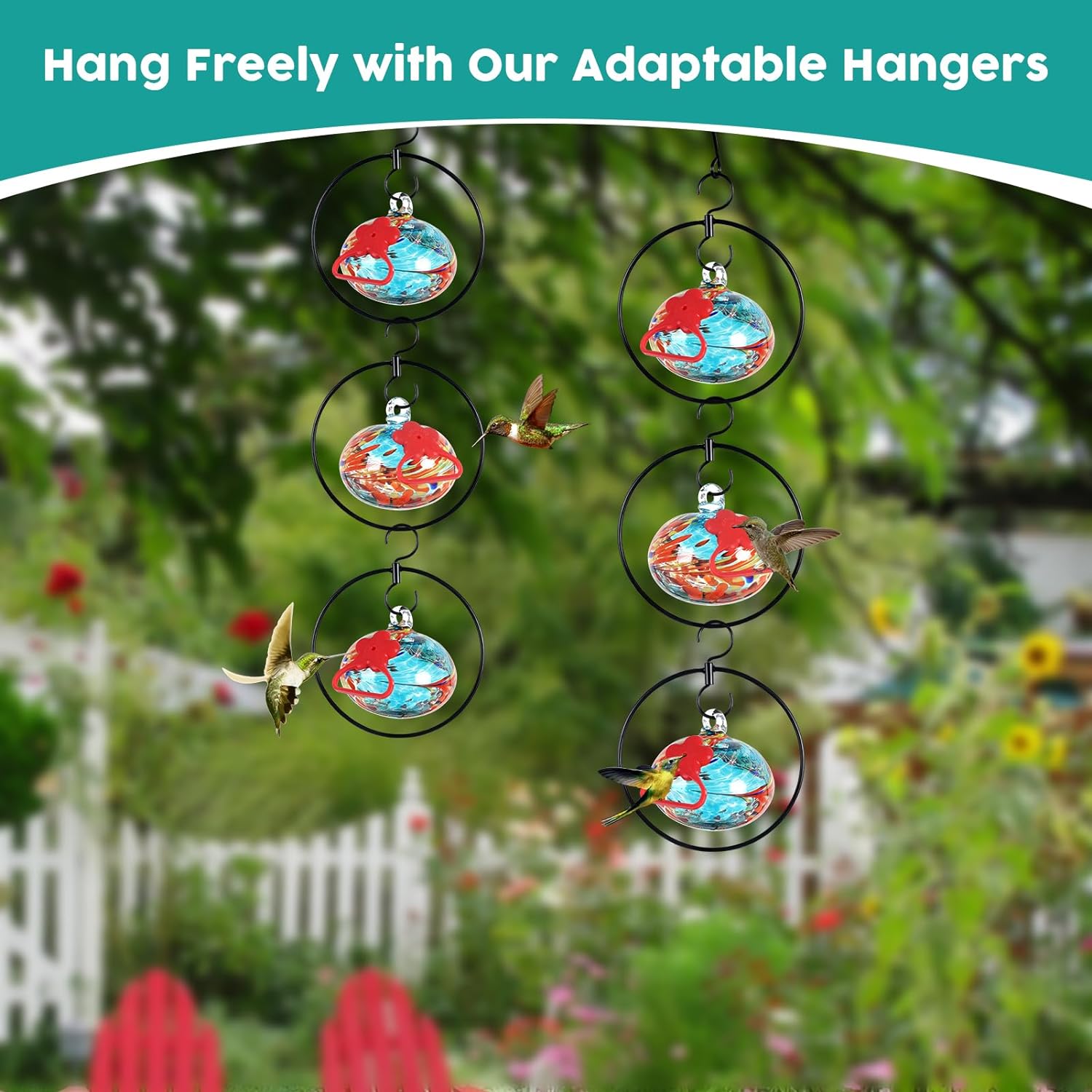 Flexible 6-Circular Hummingbird feeders for Outdoors Hanging Ant and Bee Proof,Hand Blown Glass Hummingbird Feeder with 6 Adjustable Silicone Perch(Blue)