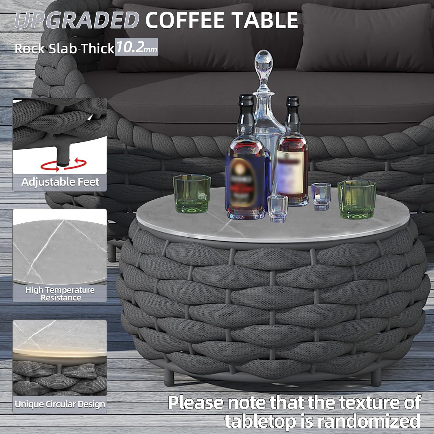 - Rock Slab Side Table: TWT outdoor furniture set's 25.7 inches side table made of durable rock slab.Textured patterned end table can holds your snacks,drinks and food,easy to clean and maintain,simply wipe clean with a damp cloth,strong hardness,high temperature,non-fading