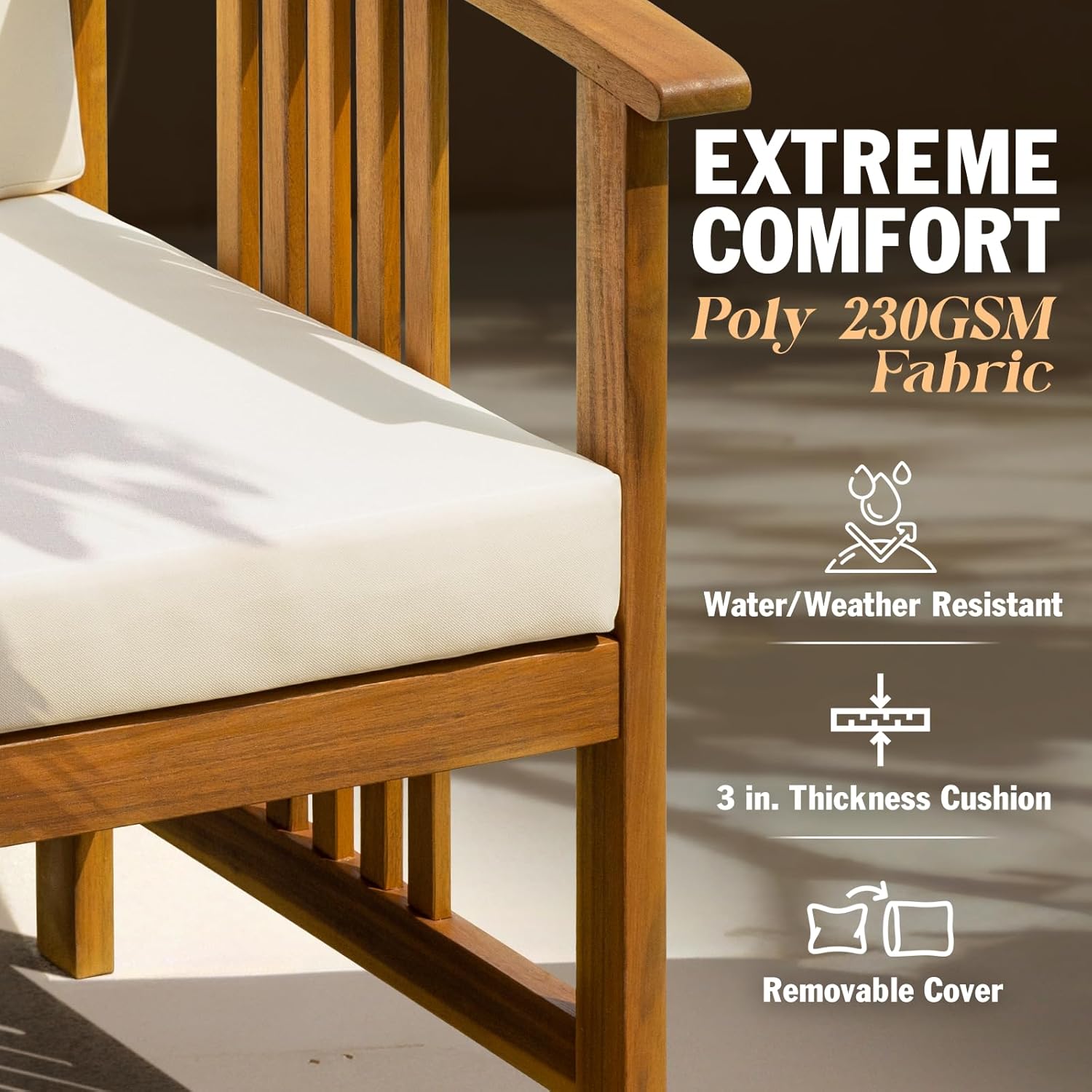 - Solid Wood Frame for Durability: This patio furniture set is crafted from FSC-certified acacia wood, ensuring rustproof durability, beauty, and prevention of cracking or deforming. It has a large weight capacityโ450 lbs for chairs and 225 lbs for the table