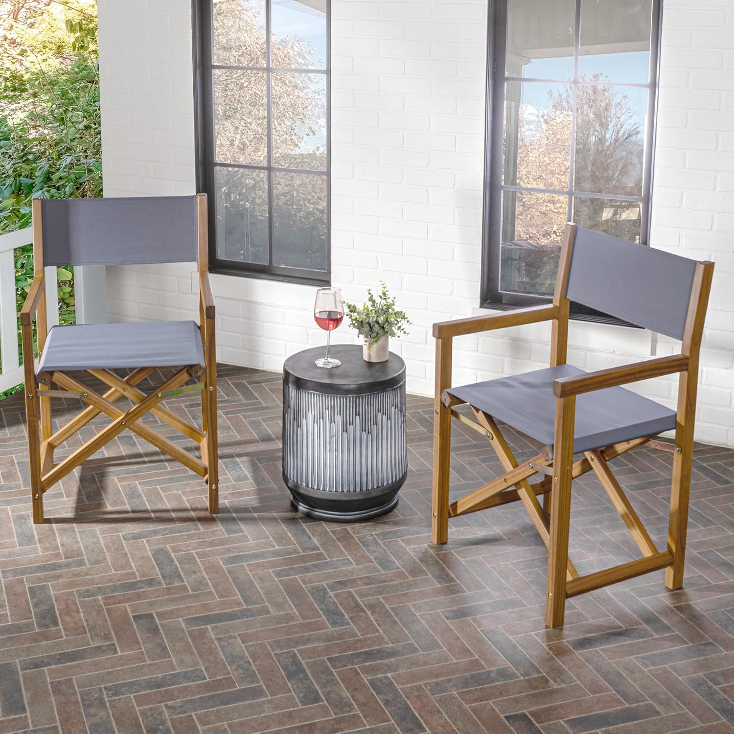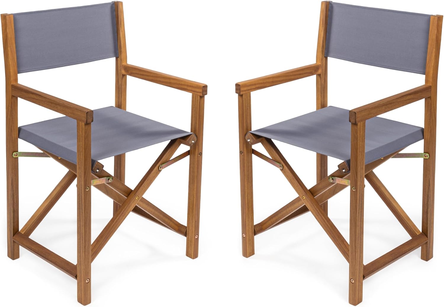 JONATHAN Y DRC1000A-SET2 Cukor Classic Vintage Outdoor Acacia Wood Folding Director Chair with Canvas Seat Mid-Century, Modern, Traditional, Bohemian, Coastal, Minimalist, Gray/Teak Brown (Set of 2)