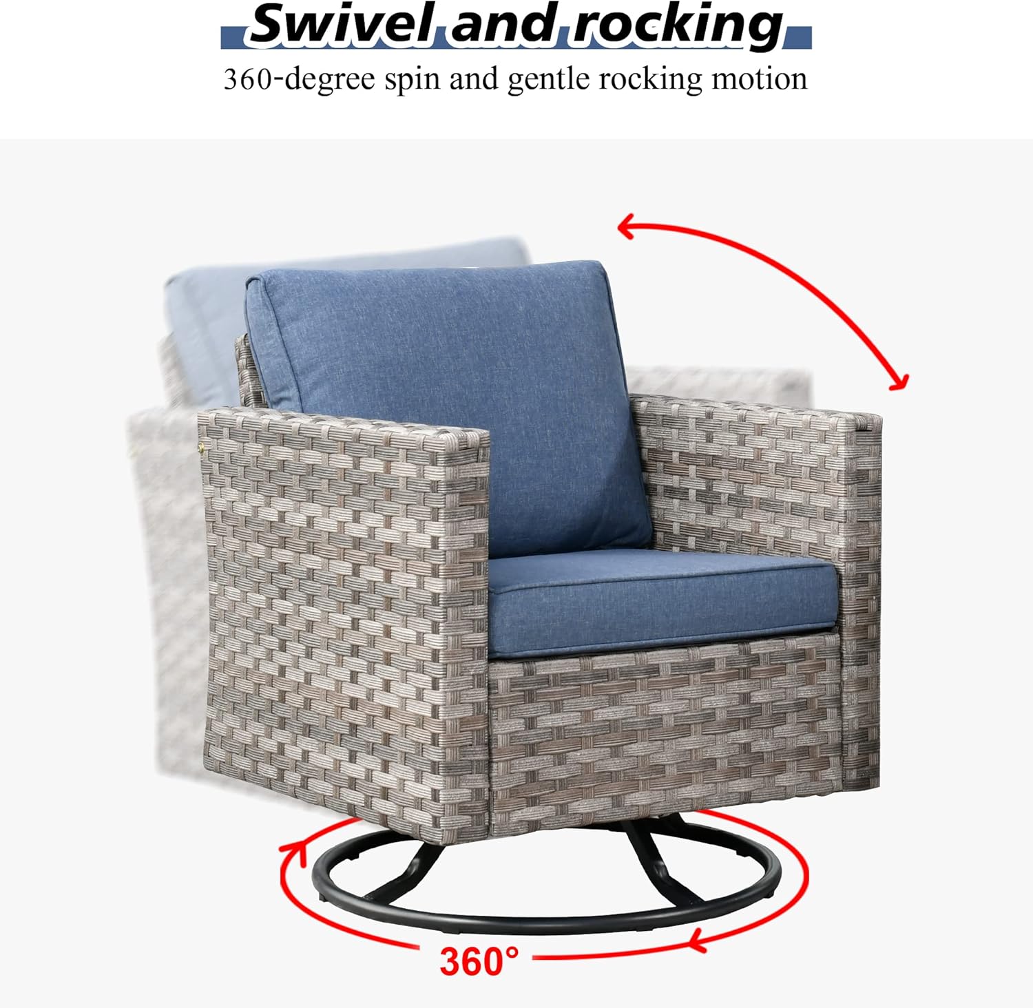 HOOOWOOO 9 Piece Modular Patio Outdoor Sectional Furniture Set with Swivel Rocking Chairs,Wicker Conversation Sofa Set,Outside Couch Set with Wide Arm(Denim Blue)