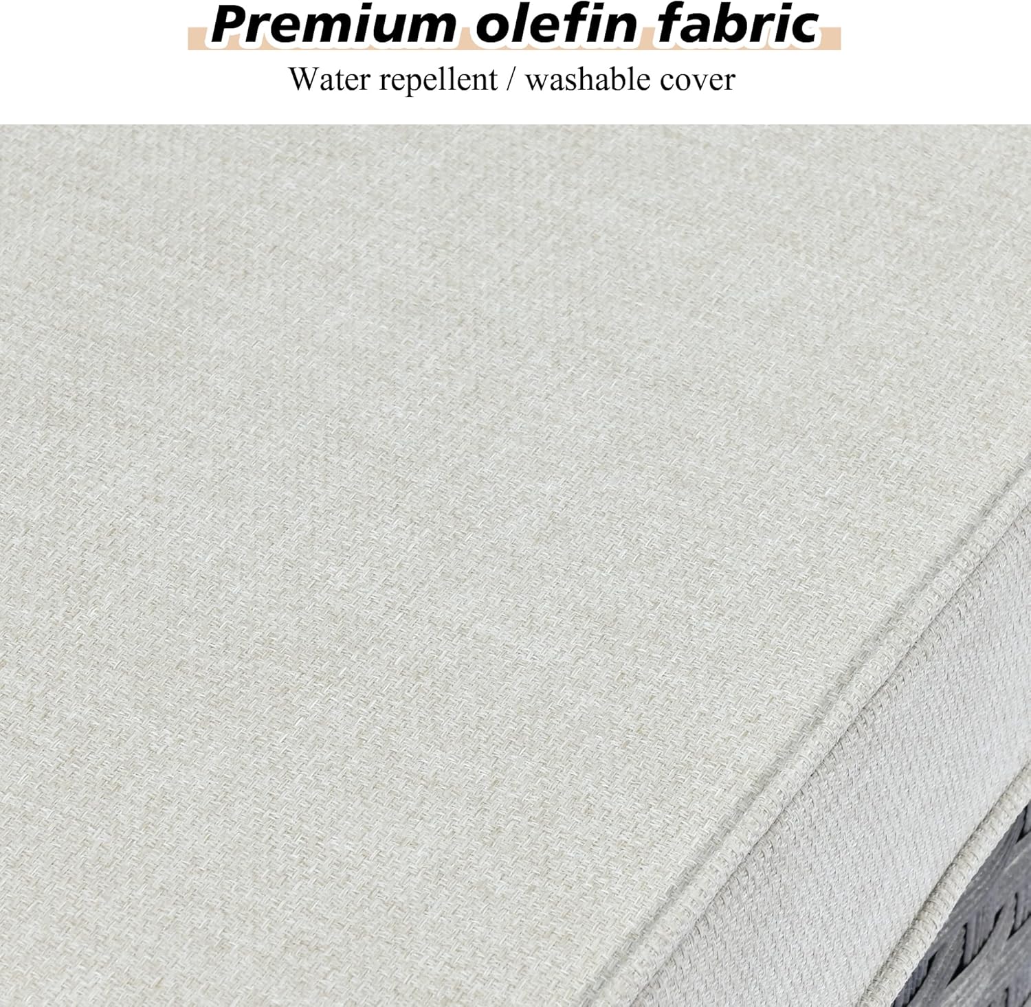 - Weather Resistance: PE strengthen wicker UV treated for long lasting. Cushions with yarn dyed woven cover features with UV-resistance, water drops/spilt resistance and good ventilation, resists water drops, coffee spilt. Unlike cheaply made thin print fabric, yarn dyed woven fabric got beautiful texture