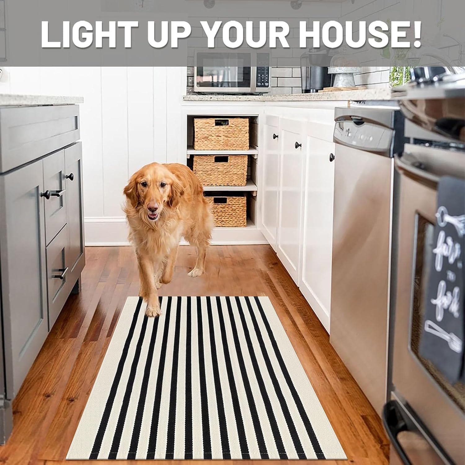 - Easy to Clean: This light beige and black striped rug is simple to maintain with machine wash or vacuuming to remove dirt. The rug is sturdy and can be tumble dried on low. Keep your door rug fresh and clean with minimal effort. NOTE: Cotton rugs normally shrink slightly after washing