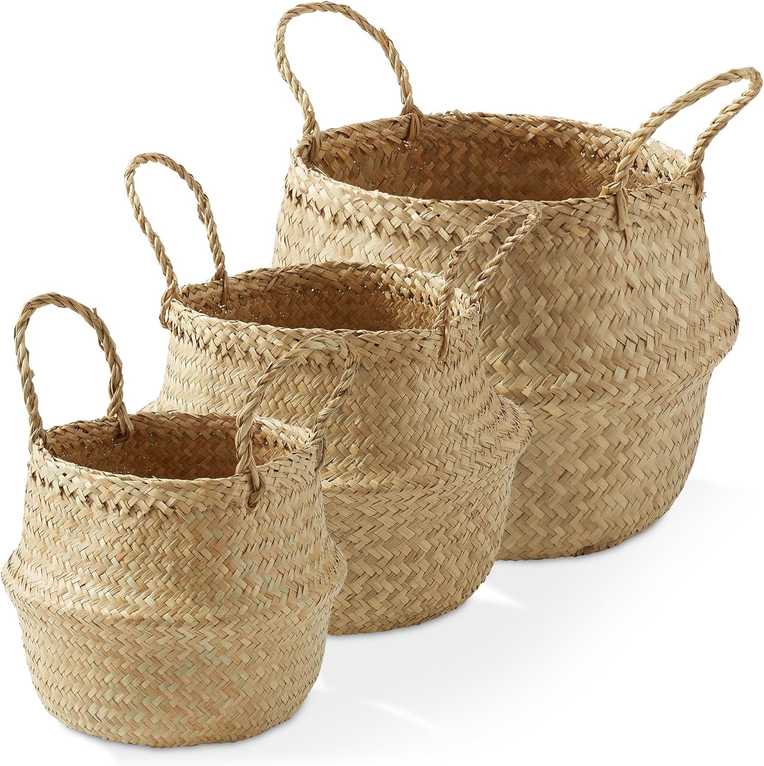 - Versatile sizes for every need: This set of 3 seagrass belly baskets is the perfect addition to any home. They offer ample storage for blankets, toys, or laundry and can be used as planters. They feature a foldable design for effortless organization. Dimensions: Small - 9-1/2" Diameter x 8" High, Medium - 11" Diameter x 9-1/2" High, Large - 13-1/2" Diameter x 11-1/2" High