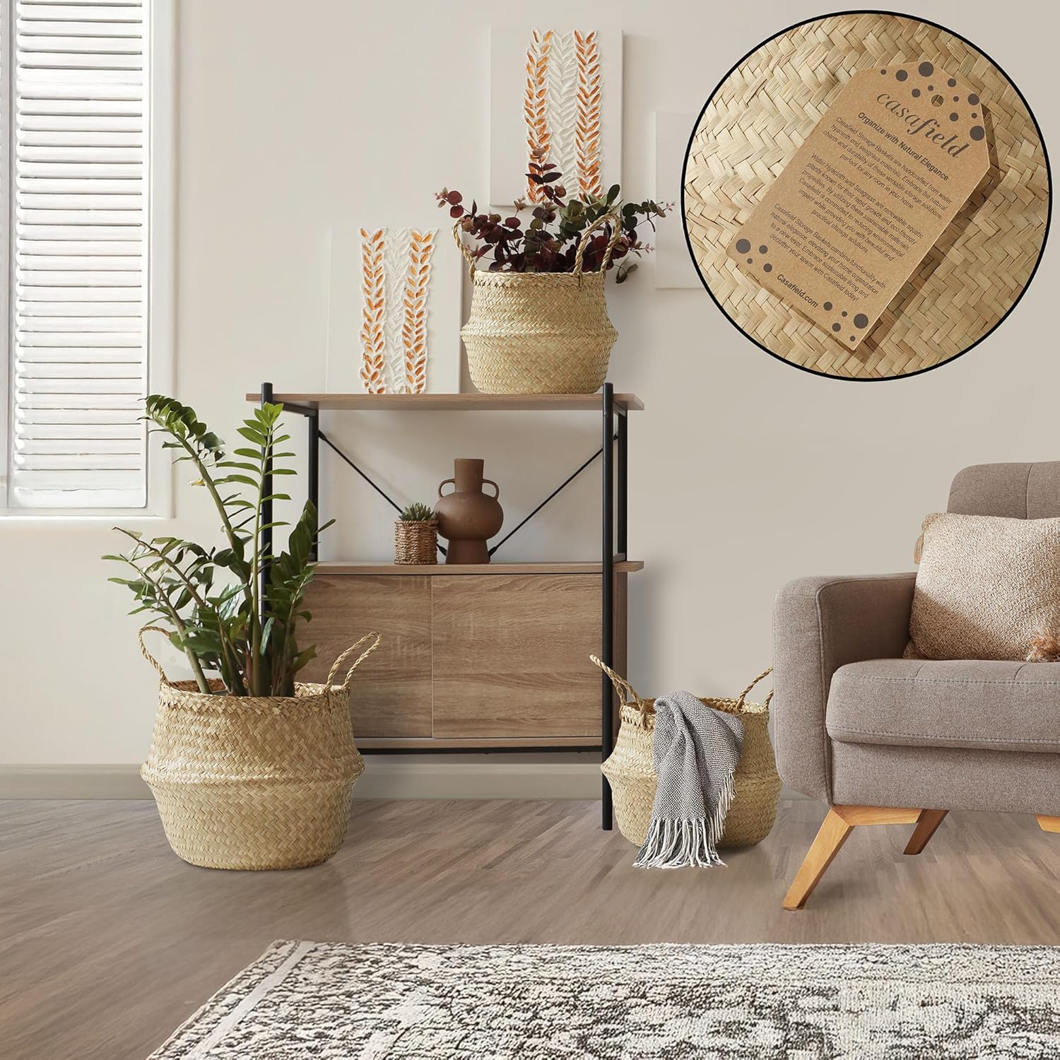 Casafield (Set of 3) Seagrass Belly Storage Basket Planters - Small, Medium, Large, Natural Woven Wicker Indoor Plant Pot Covers for Plants and Trees