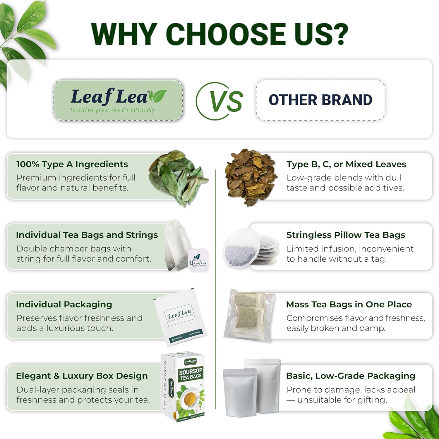 - ☘️ INDIVIDUALLY SEALED FOR FRESHNESS: Each Leaflea tea bag is individually packaged in foil pouches to preserve the unique flavor of soursop leaf tea. The design of each small package makes it easy to carry and use everywhere, even when you travel, or go on a business trip.
