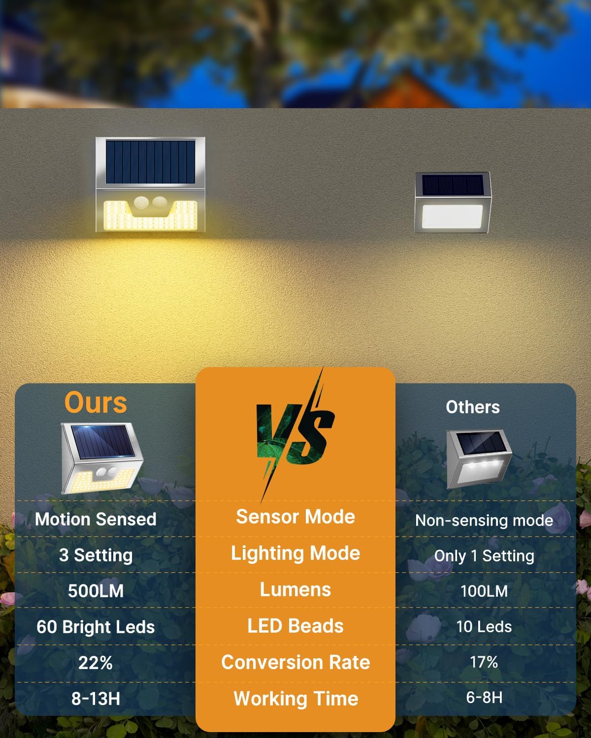 - Faster Charging-Longer Illumination:This solar motion activated light boasts a supercharged solar panel with a 20-22% conversion rate, meaning it charges up quicker during the day. That translates to longer illumination at night, keeping your outdoor space brightly lit for enhanced safety and security
