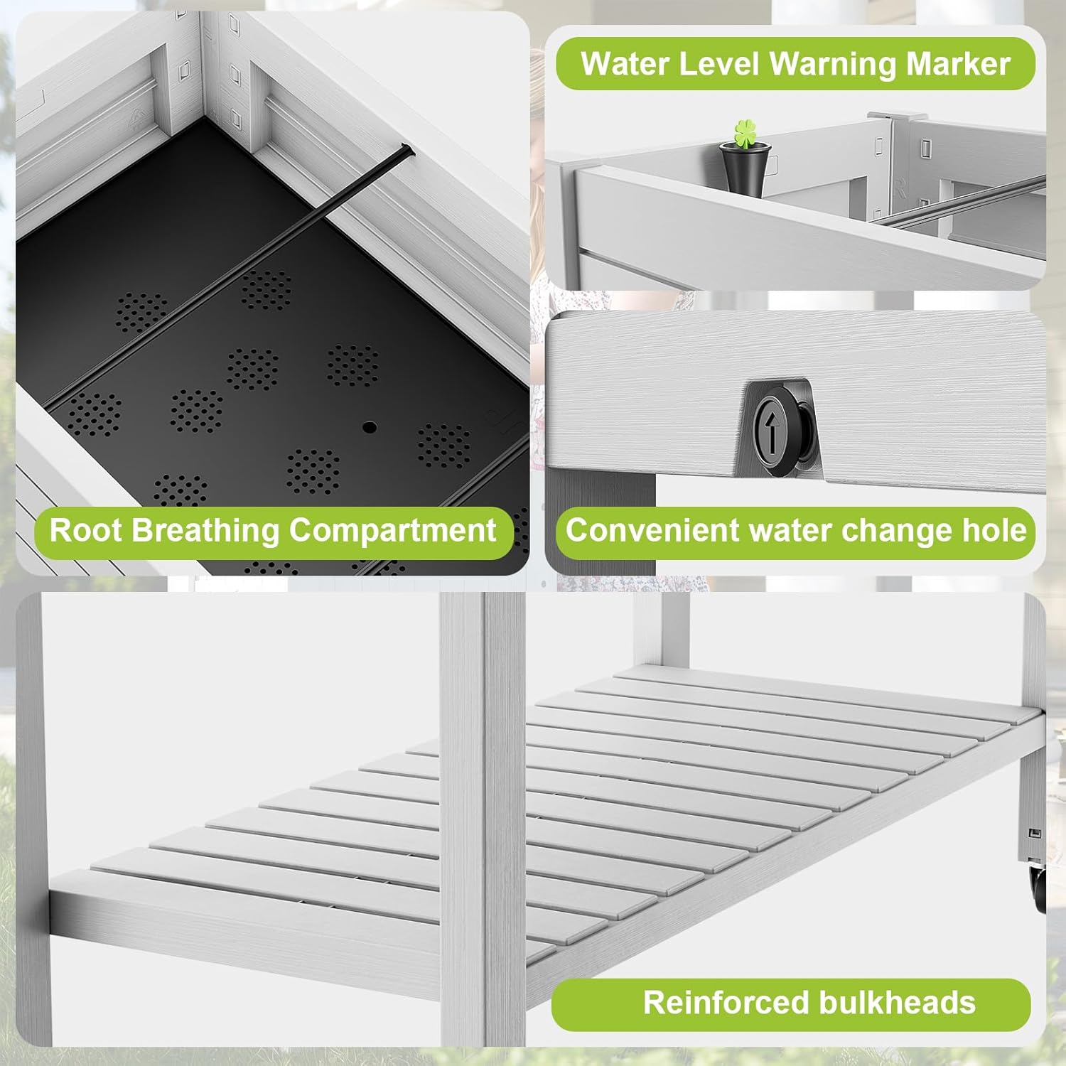 Elevated Raised Garden Bed with Wheels,Outdoor Large Resin Patio Planter Box Stand Divisible with Drain Plug,Water Monitor for Plants Vegetables Flowers Fruits(Ashen)