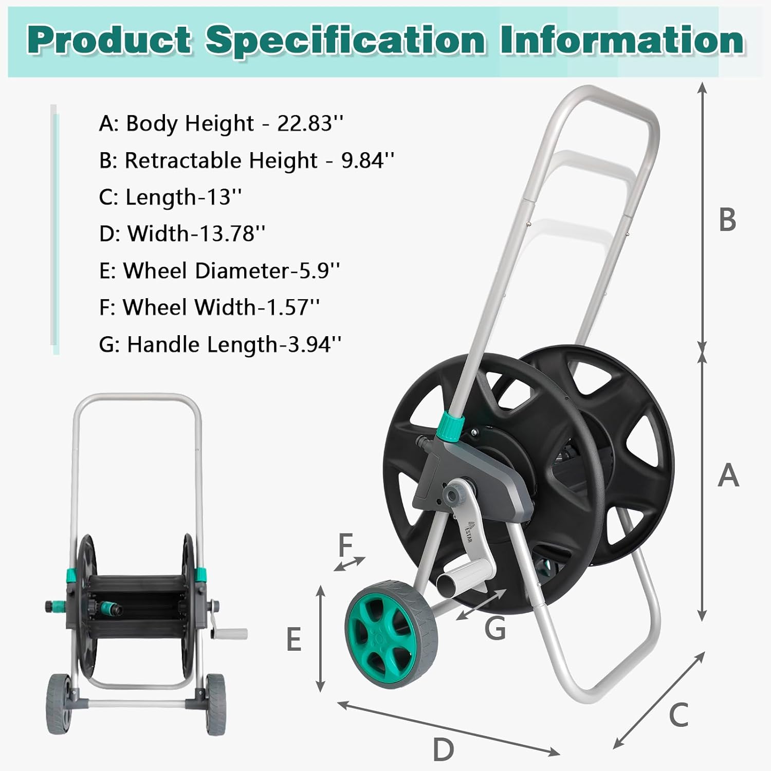 - EASY TO ASSEMBLE: Our wheeled hose reel cart is easy to install and can be set up in 10 minutes. The product installation manual and complete product accessories are included in the box.(or you can refer to our installation video)