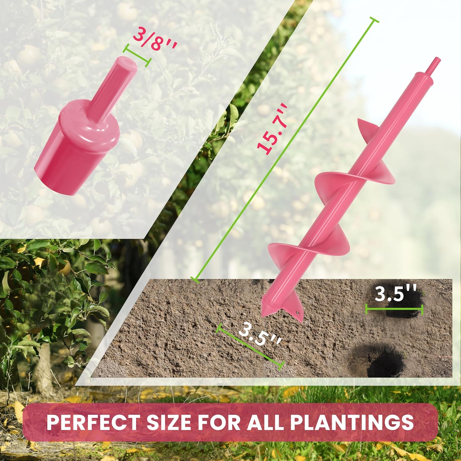 - Efficient Planting: The auger drill bit creates holes up to 16 inches deep and 3.5 inches wide, making it ideal for planting bulbs, flowers, and small trees quickly and easily.