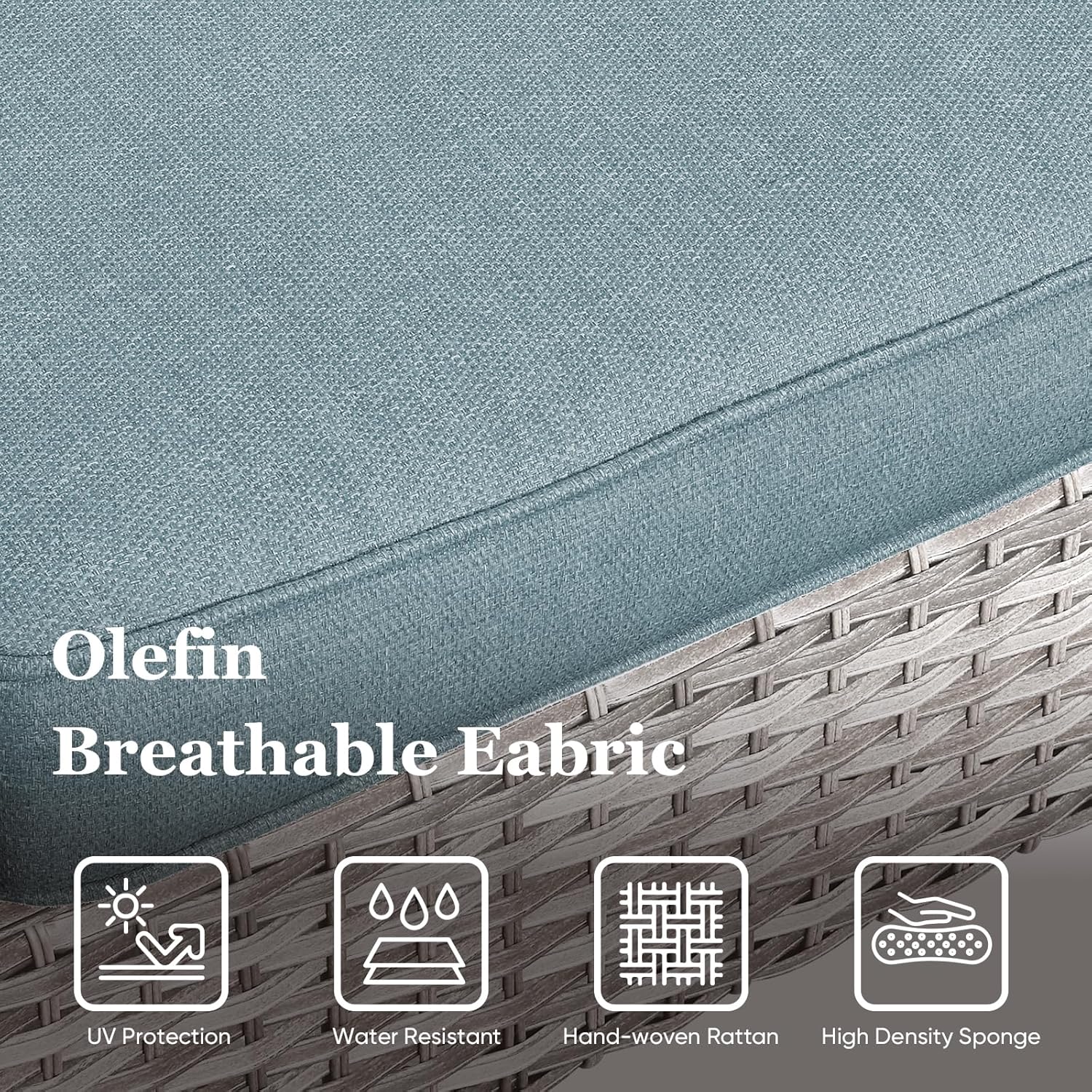 - Detachable Covers:The patio furniture cushions are covered in olefin fabric provides exceptional UV protection and water-repellant feature. The fabrics could dry very fast after sprinkling water coffee or juice. Come with a smooth zipper, Easy to replace and clean.