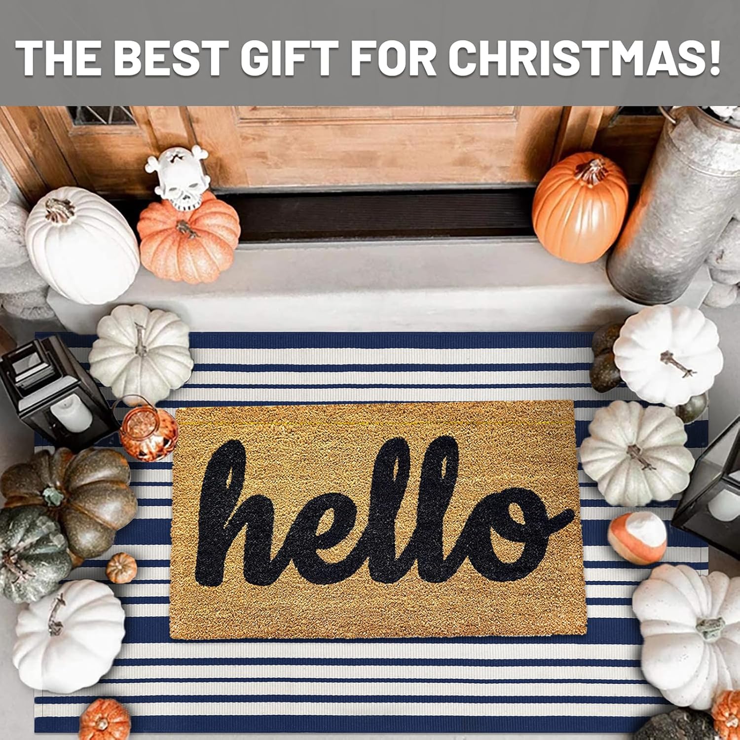 - Easy to Clean: This navy and white striped rug is simple to maintain with machine wash or vacuuming to remove dirt. The rug is sturdy and can be tumble dried on low. Keep your door rug fresh and clean with minimal effort. NOTE: Cotton rugs normally shrink slightly after washing