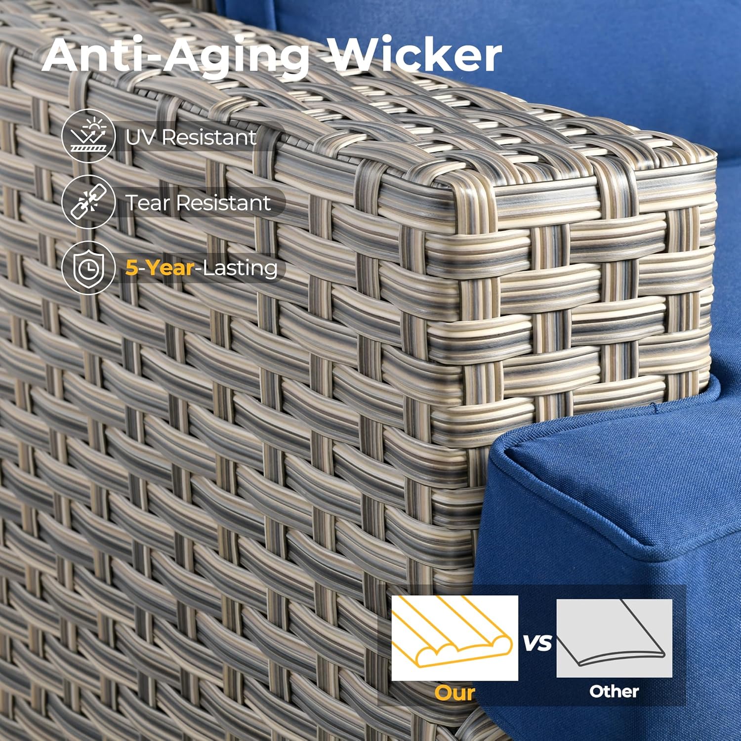 - All Weather & Durable: Selected anti-ageing treated thicken PE wicker rattan for UV resistant, wear resistant and all weatherproof. 3D strengthen and widen design for extended service life,twice service life as others