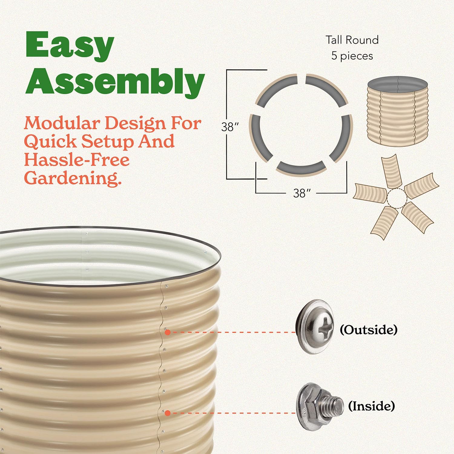 Epic Gardening 5-in-1 Modular Galvanized Raised Garden Bed Kit, 30" Short Metal Planter Box, Durable Aluzinc Steel Raised Garden Bed Outdoor for Vegetables, Herbs, Flowers & Fruits - Round Light Clay