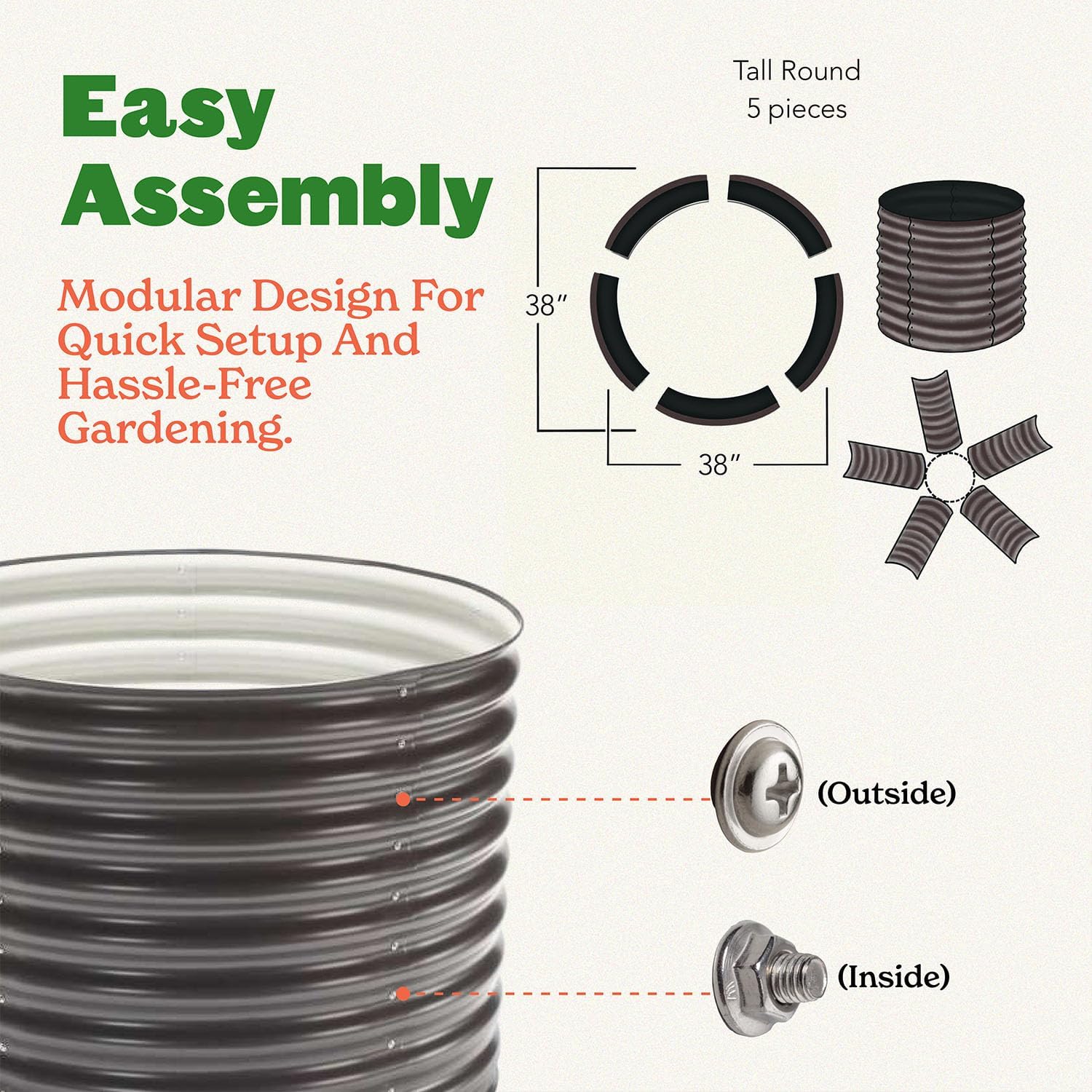 Epic Gardening 5-in-1 Modular Galvanized Raised Garden Bed Kit, 15" Tall Metal Planter Box, Durable Aluzinc Steel Raised Garden Bed Outdoor for Vegetables, Herbs, Flowers & Fruits - Round - Slate Grey