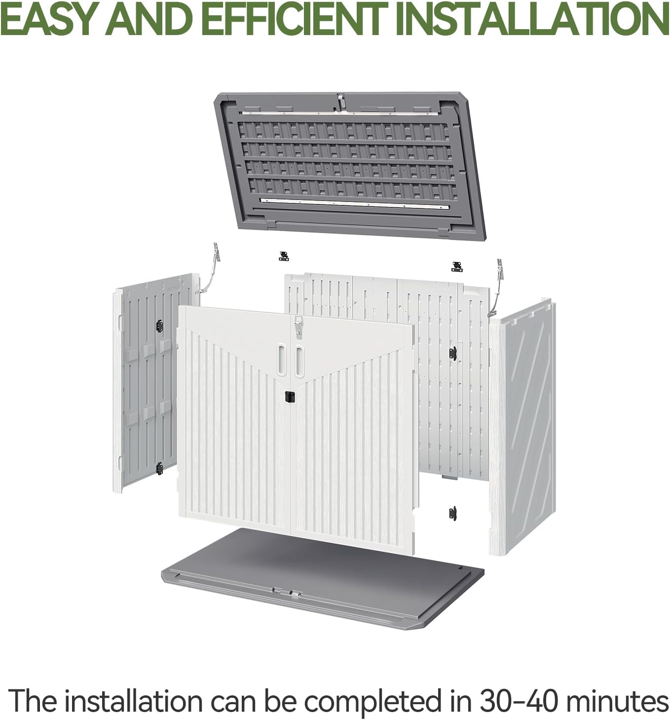 Aoxun Outdoor Storage Cabinet 35 Cu.Ft Outdoor Trash Can Storage Shed Waterproof Horizontal Storage Shed Outdoor Storage for Garbage Bin, Generator, and Lawn Mower (White)