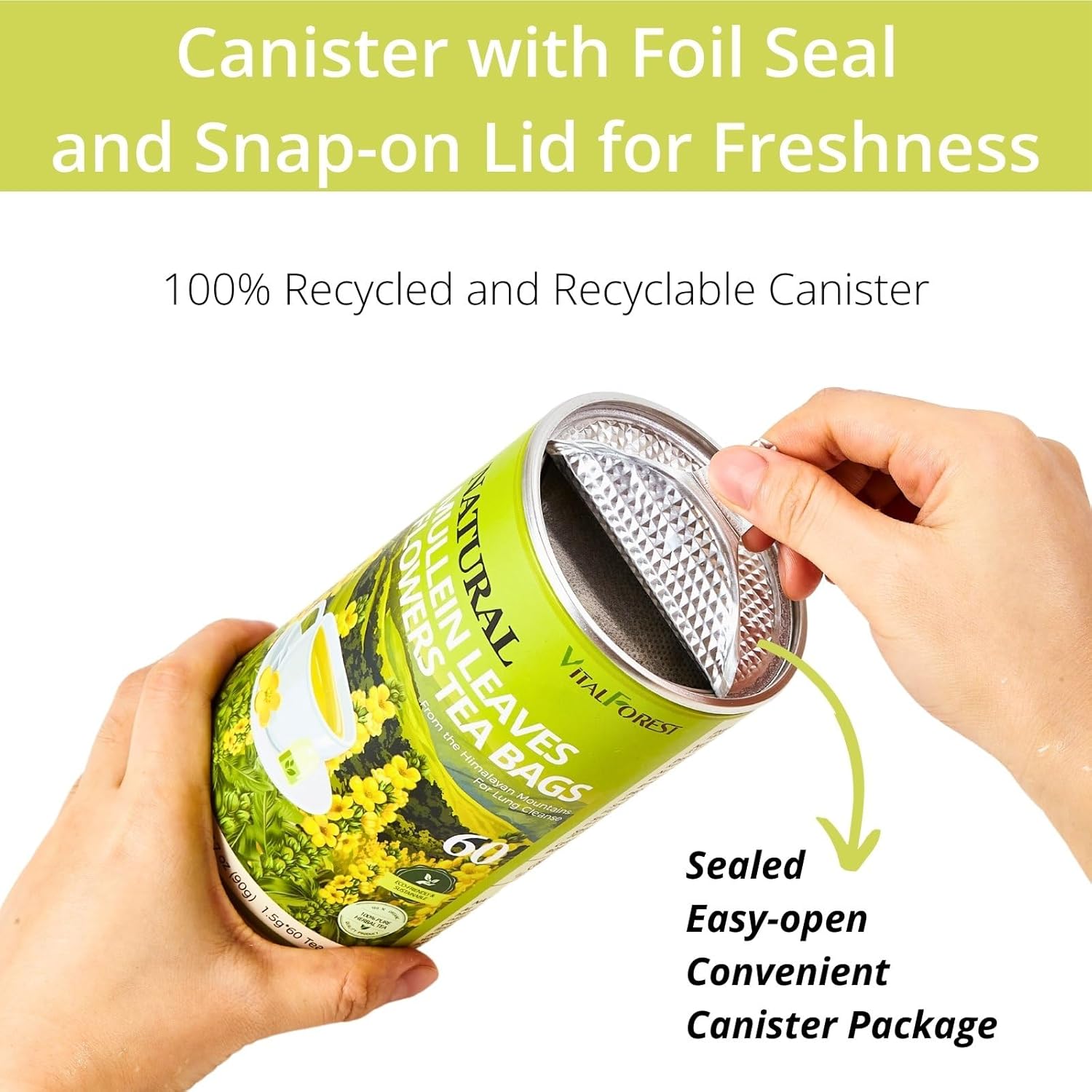 - [ Eco-Conscious Tea Bags & Canister ]: Our best mullein leaf tea bags are made from corn fiber, they contain no strings, wrapping, staples, adhesive, bleach, or dyes, good for the environment and health. Enjoy pure, high-quality tea leaves in biodegradable-bags. And special convenient recyclable can container pack for its freshness