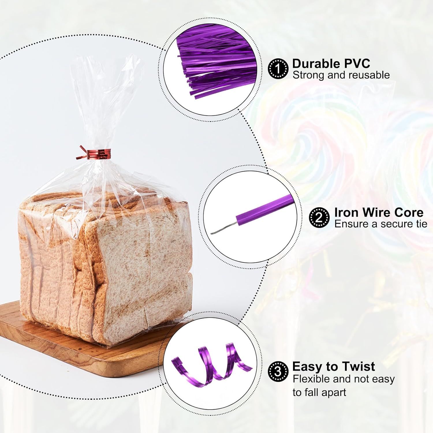 HARFINGTON 800pcs Bag Twist Ties 4" Reusable Plastic Metallic Twist Ties Wire Cable Ties for Party Bread Candy Cake, Purple