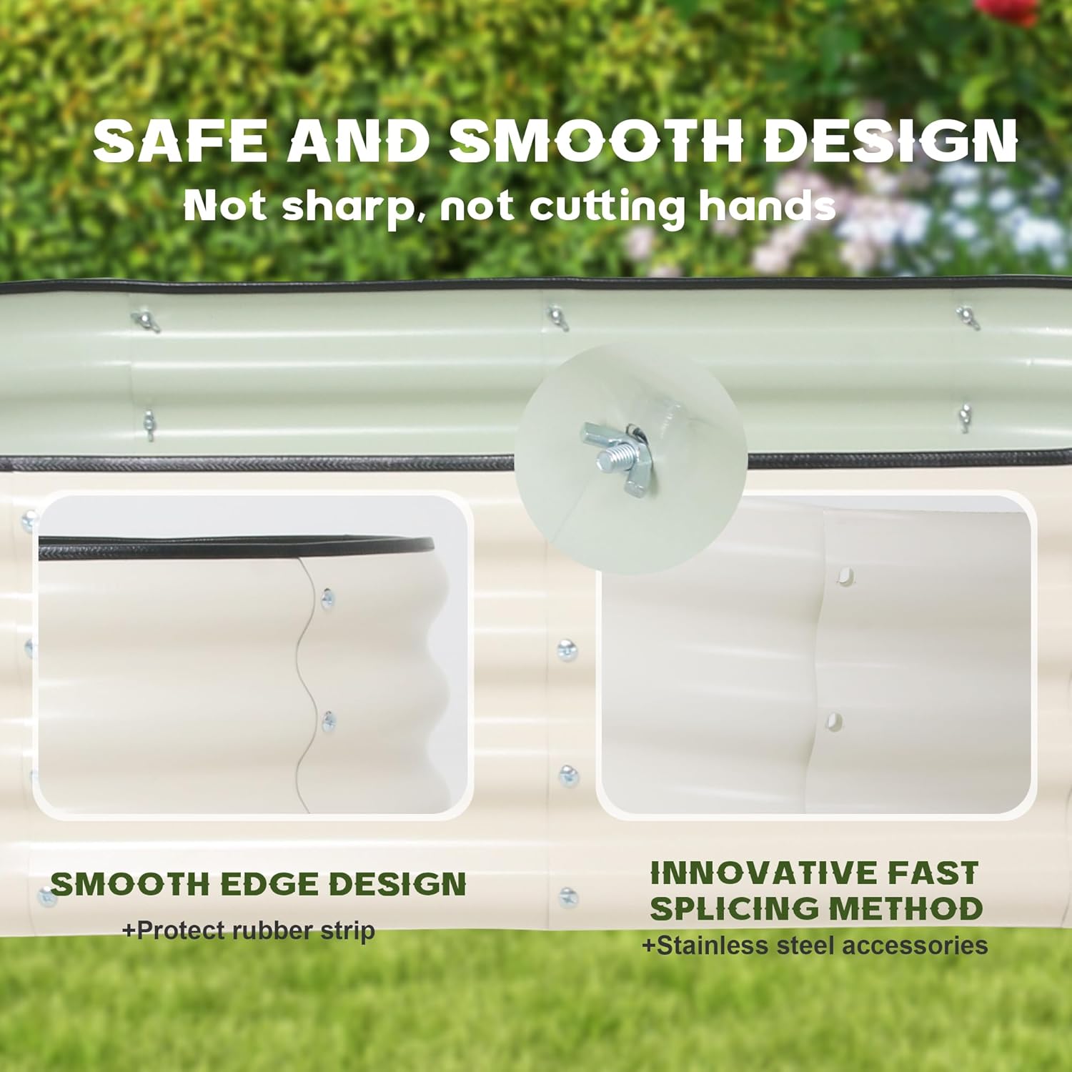 • Durable Material: This robust and durable planter box is constructed from high-quality galvanized steel, featuring a wall thickness of 0.6 millimeters. The surface is treated with an anti-rust coating, while the overlapping sections achieve a maximum thickness of 1.2 millimeters. For your convenience, the product includes a screwdriver and gloves.The black rubber sealing edge not only effectively prevents hand injuries but also enhances both the stability and aesthetic appeal of the flower bed