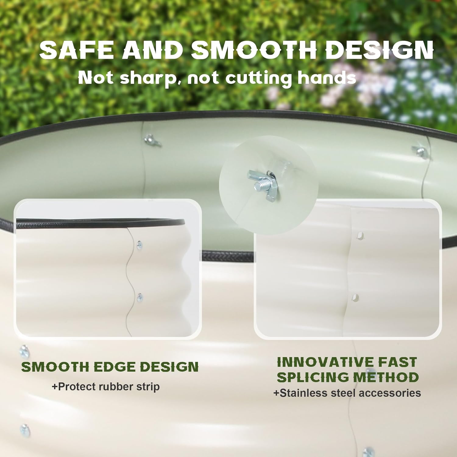 - Durable Material: This robust and durable planter box is constructed from high-quality galvanized steel, featuring a wall thickness of 0.6 millimeters. The surface is treated with an anti-rust coating, while the overlapping sections achieve a maximum thickness of 1.2 millimeters. For your convenience, the product includes a screwdriver and gloves.The black rubber sealing edge not only effectively prevents hand injuries but also enhances both the stability and aesthetic appeal of the flower bed
