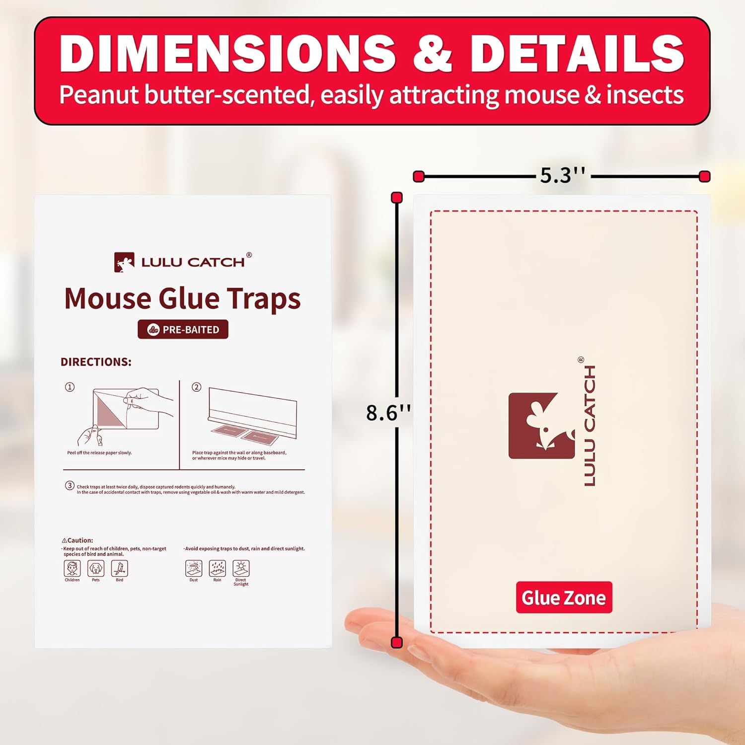 - NON-TOXIC & FAMILY-SAFE: Keep your home clean and safe with LULUCATCH Mouse & Insect Glue Traps.Unlike regular traps that can harm children or pets, these boards are safe and protective. Enjoy peace of mind knowing your family is protected from pests without danger or messy clean up. An ideal choice for indoor use!