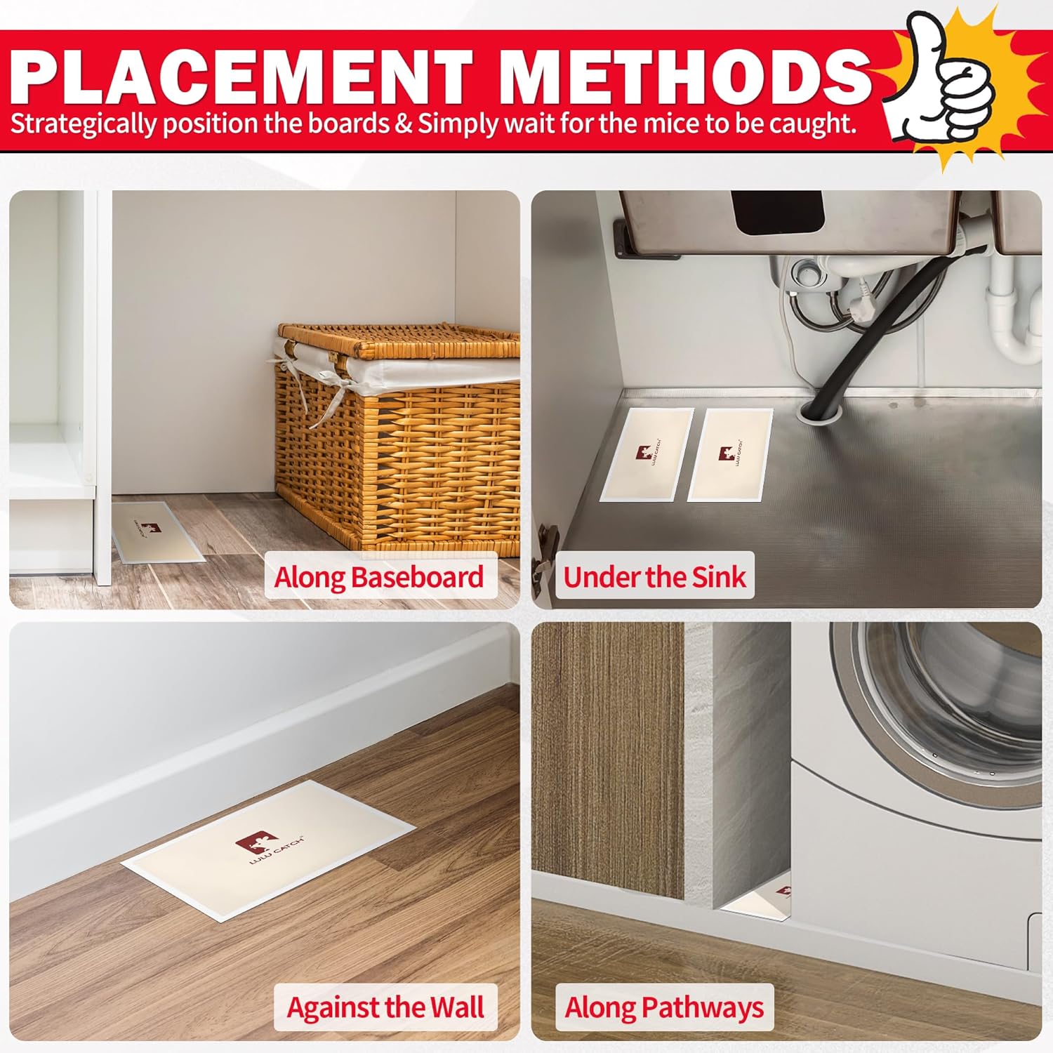 - READY TO USE: No complicated setup! Peel, place, and forget. Position boards along rodent pathways (walls, corners, entry points) or areas with insect activity. The sturdy design ensures they stay sticky for up to a year, saving you time and money. Compact yet mighty, these traps blend discreetly into any space while working tirelessly to guard your home!