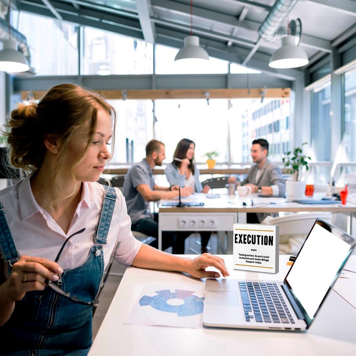 Execution Noun Entrepreneur White Wooden Box Sign, Inspirational Office Decor Decorative Table Shelf Desk Decor, Rustic Workplace Home Living Room Decor Office Decorations Desk Accessories