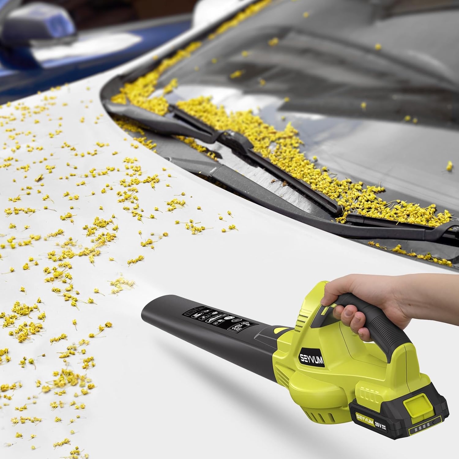 - Widely Usage: With high maneuverability and durability, household rechargeable SEYVUM leaf blowers for garden care are also used in patio, garden, cars, jobsite, camping, shop, depot and wood working