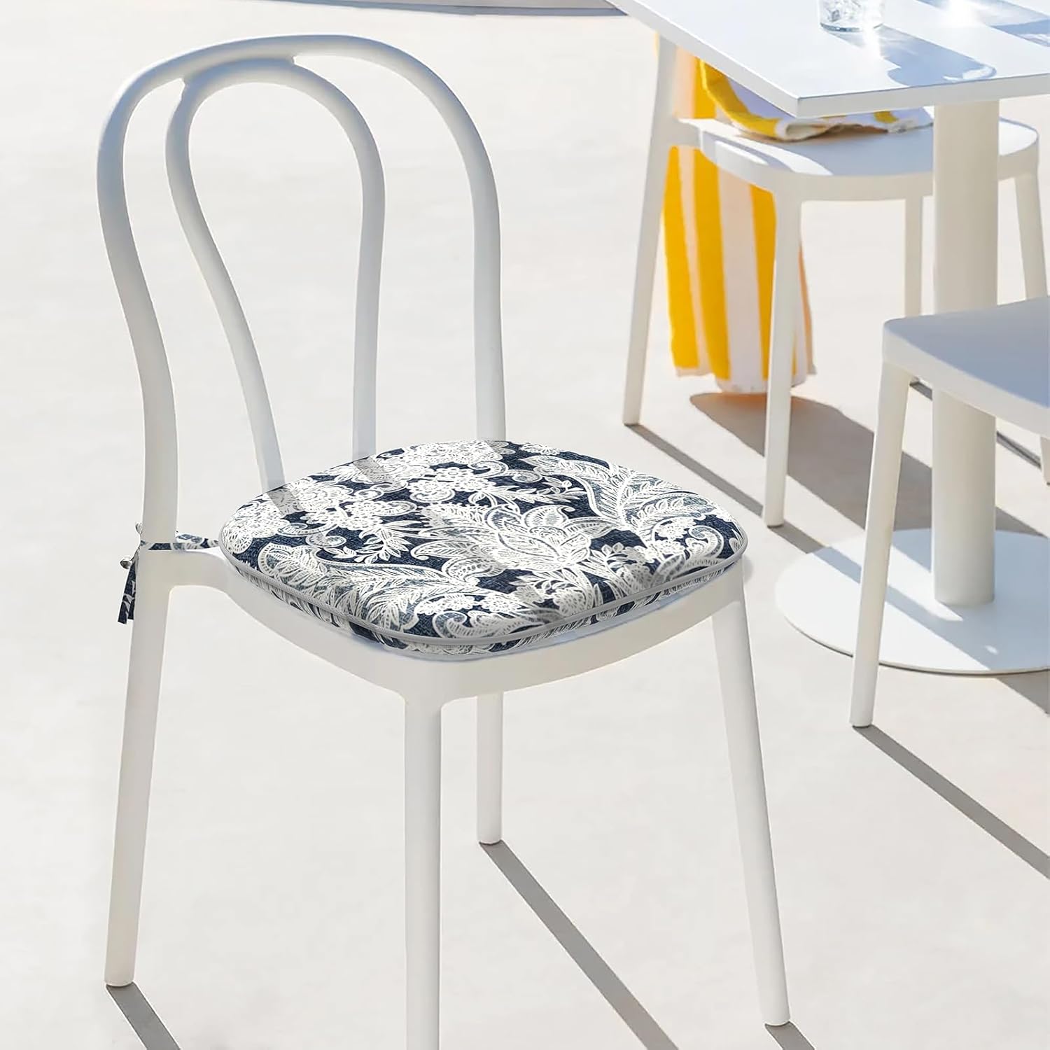 Indoor/Outdoor Chair Cushions 16x17 Inch, Patio Chair Cushions with Ties, All Weather Seat Cushions for Patio Furniture Home Garden Chair Use, Set of 4,Damask Lapis