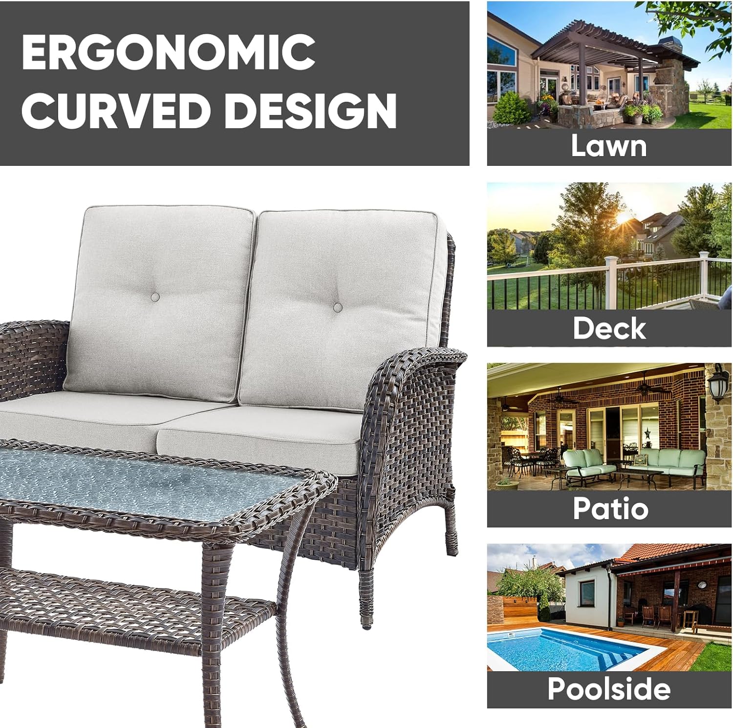 HUMMUH 4-Piece Patio Furniture Wicker Outdoor Conversation Set,All-Weather Rattan Outdoor Sofa Set Patio Chairs Coffee Table for Backyard,Porch,Deck