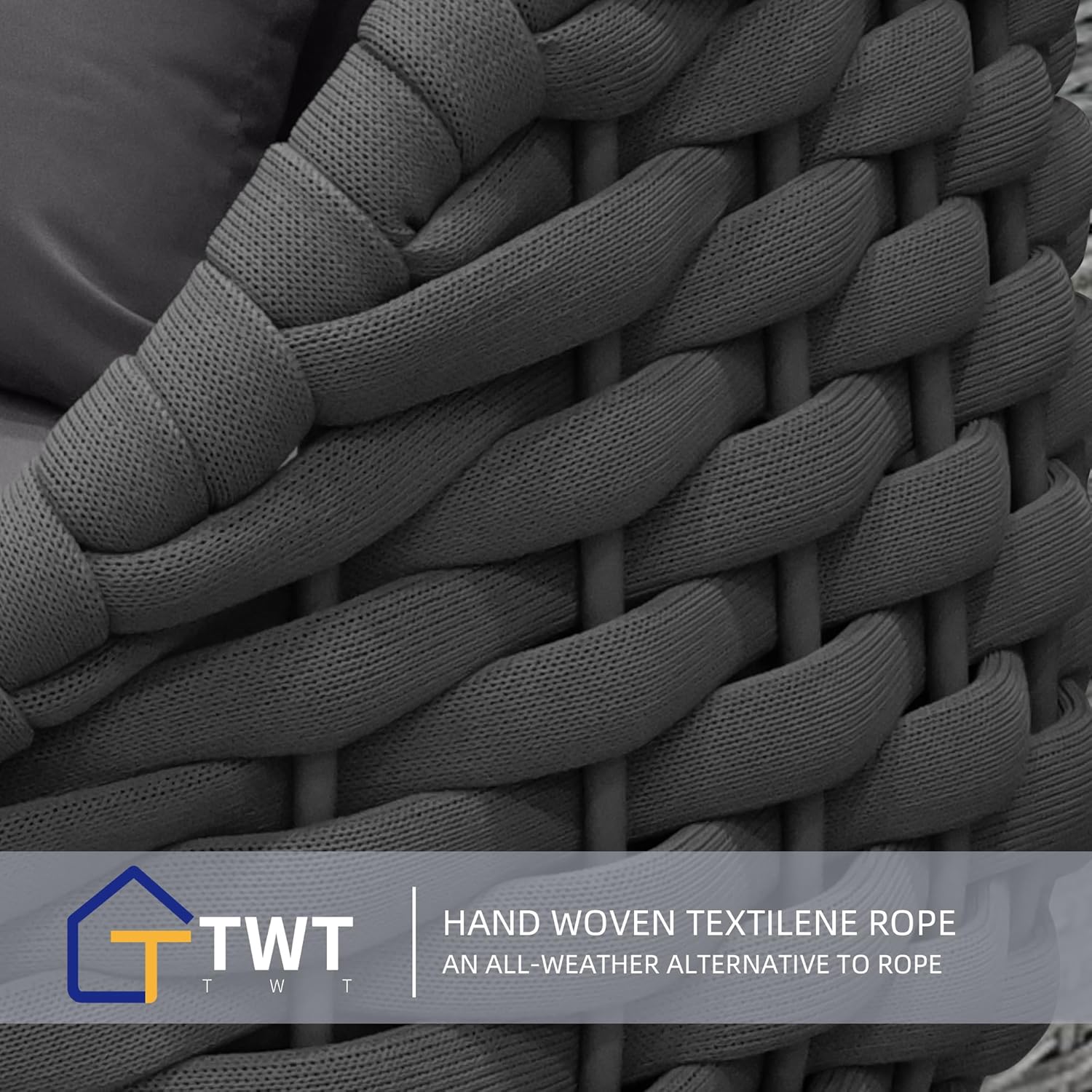 - Sturdy & Durable - Quick drying woven rope outdoor furniture with high quality aluminum alloy,no rust,no deformation,hand woven textilene rope are strong enough to withstand all weather variations.Outdoor patio furniture set cushions balance well with sturdy frame.