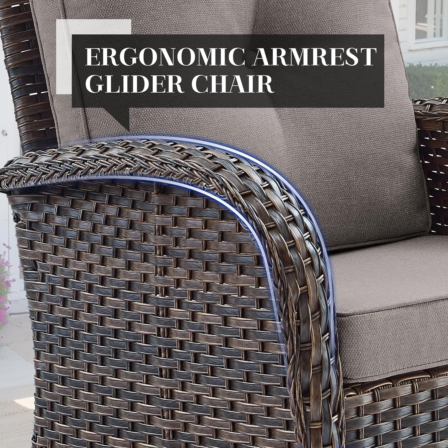 HUMMUH 5-Piece Patio Furniture Set with Fire Pit,Wicker Outdoor Rocking Chairs Patio Sofa for Backyard,Poolside,Deck