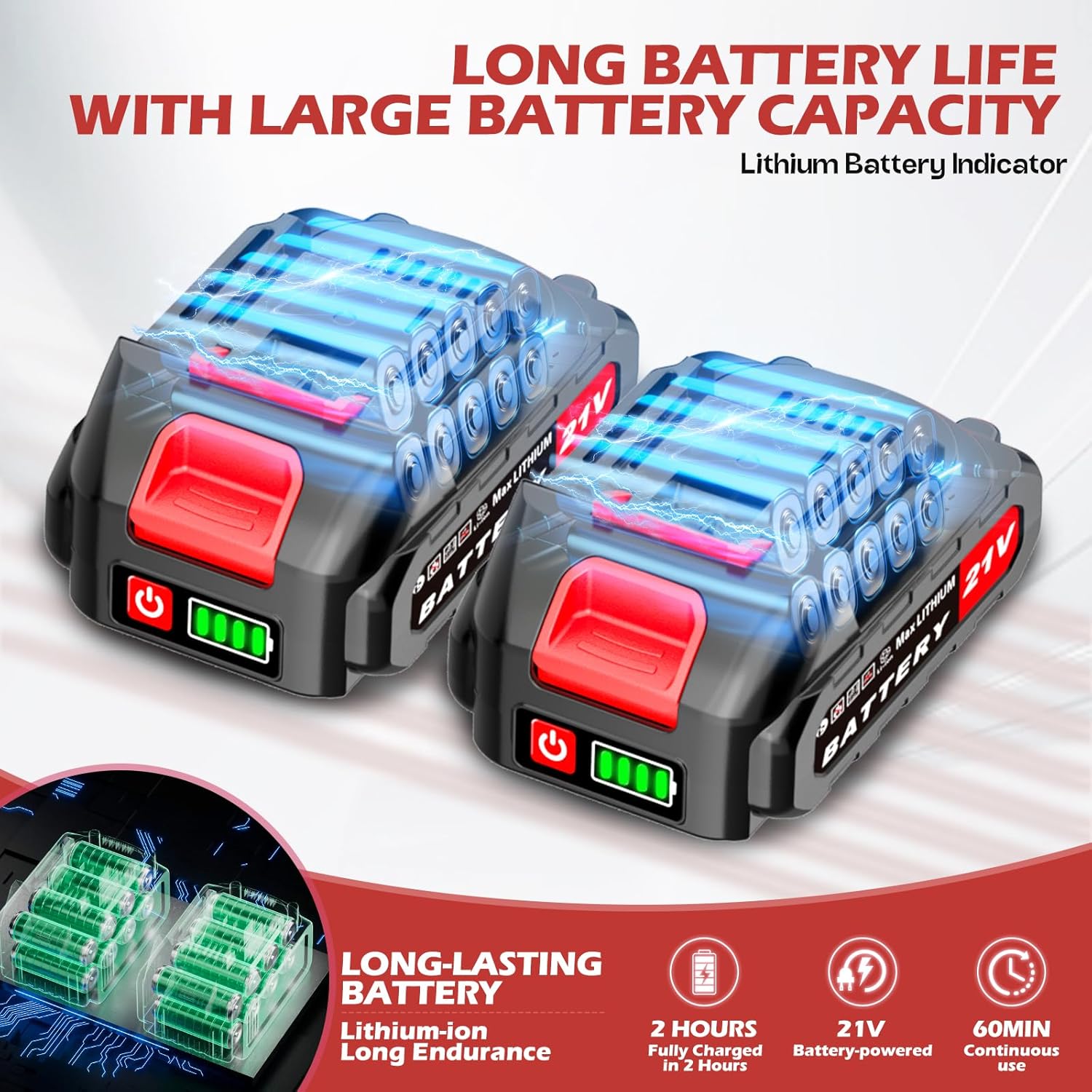 Cordless Hedge Trimmer, 2-in-1 Hedge Trimmer, Ultra Long Battery Life with Battery*2, high-Power and high-Capacity Grass Trimmer for Gardens, Yards and lawns, Including Charger