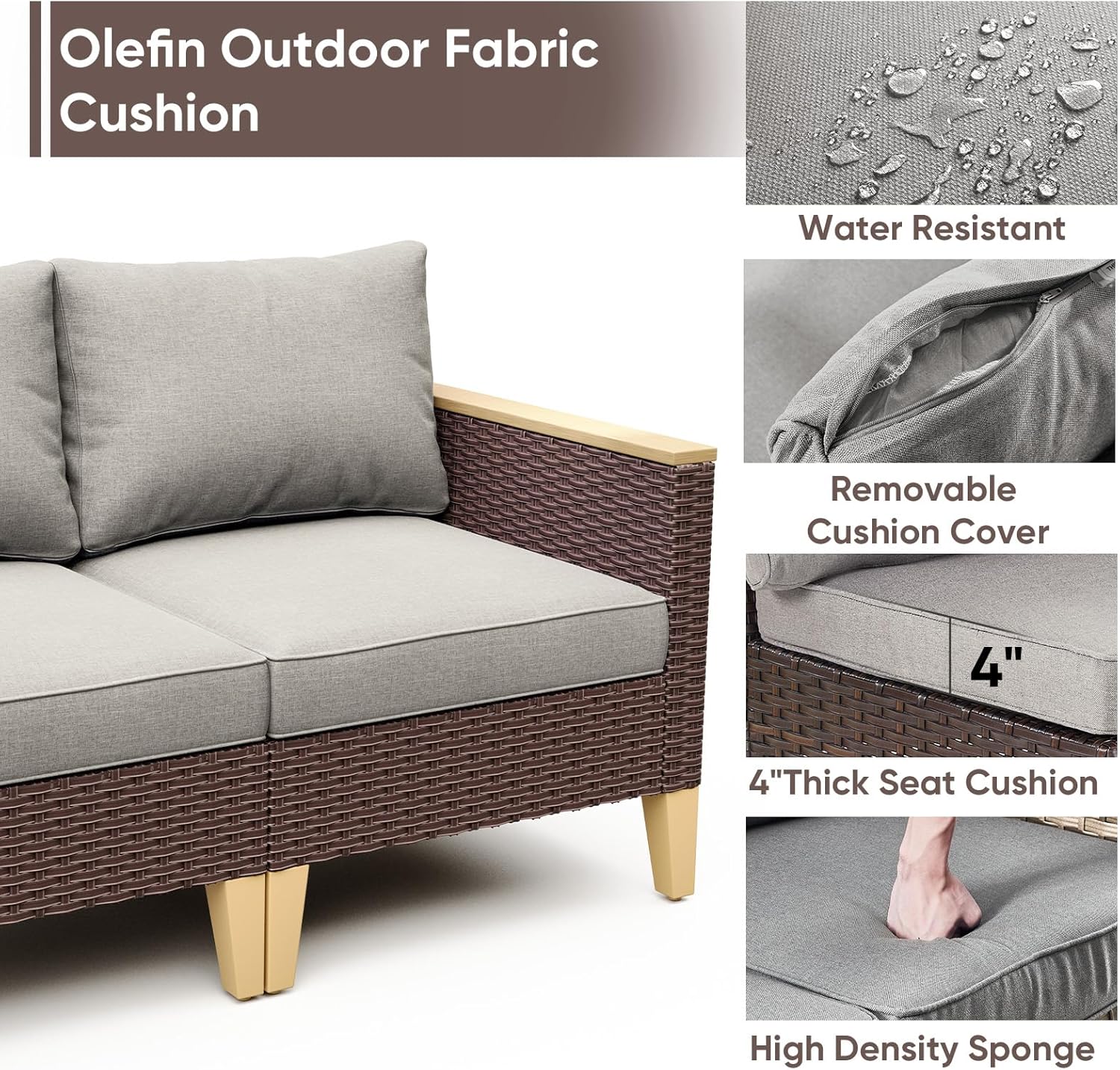 - Free Combination:Our patio furniture set includes individual chairs, corner chairs, and curved double seat sofas and ottomans. you can freely combine these products to meet your needs and space size.Any quality problem please contact us for replacement.