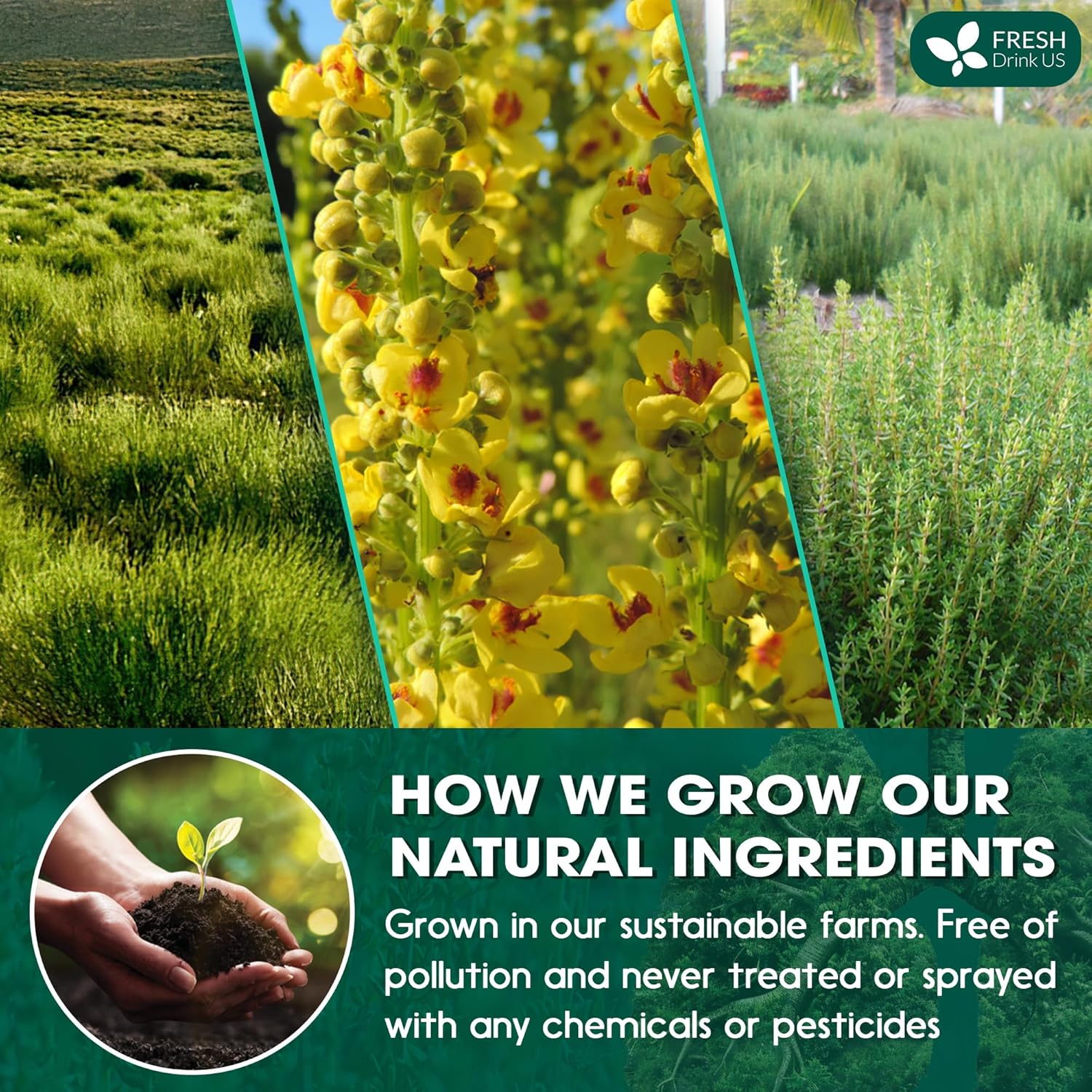 - ☘️ LUNG SUPPORT BLEND - CRAFTED WITH CARE USING REAL INGREDIENTS: Crafted with mullein leaf, ginseng, elderberry, ginger, and thyme to cleanse, detox, and support respiratory health. We source high-quality, non-GMO herbs with no artificial flavors or colors. Every tea bag is filled with a clean, honest blend made to elevate your tea ritual.