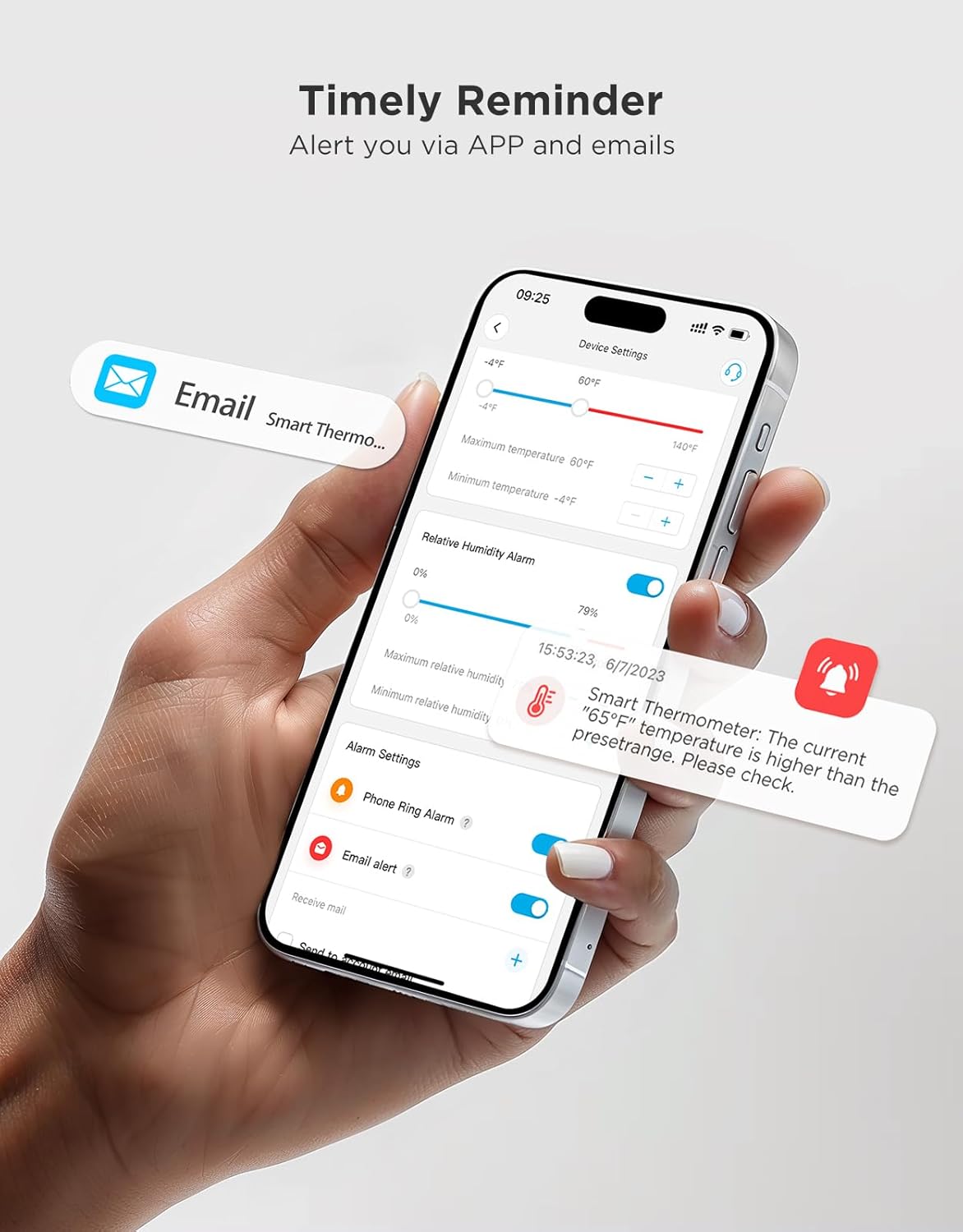 - Remote Alarm: You can preset temperature and humidity values ββvia the app. When the hygrometer thermometer sensor detects a change, you'll receive a notification via app and email, offering enough time to react through the alarm function.Only support gateway H5151/H5042.