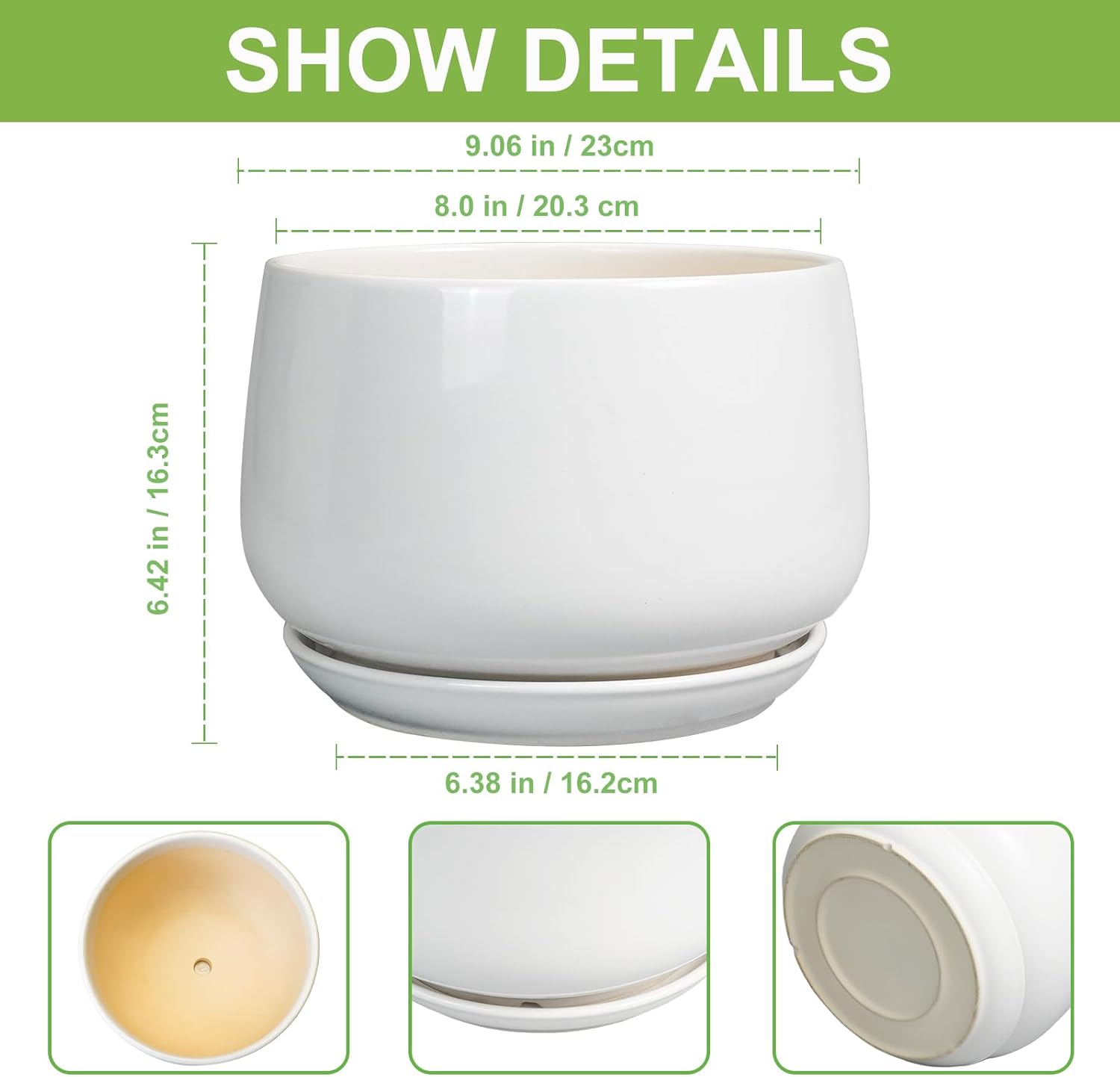 - Dimensions: The top opening of this ceramic pots for plants is 8.0", the waist diameter is 9.06", the height is 6.42". Large planter is a ideal choice for growing olive tree, bonsai tree, snake plant, money tree, succulents, monstera, cacti, aloe vera, Basil, orchids, geranium plant, pothos, peace lily, ZZ plants and other indoor & outdoor plants