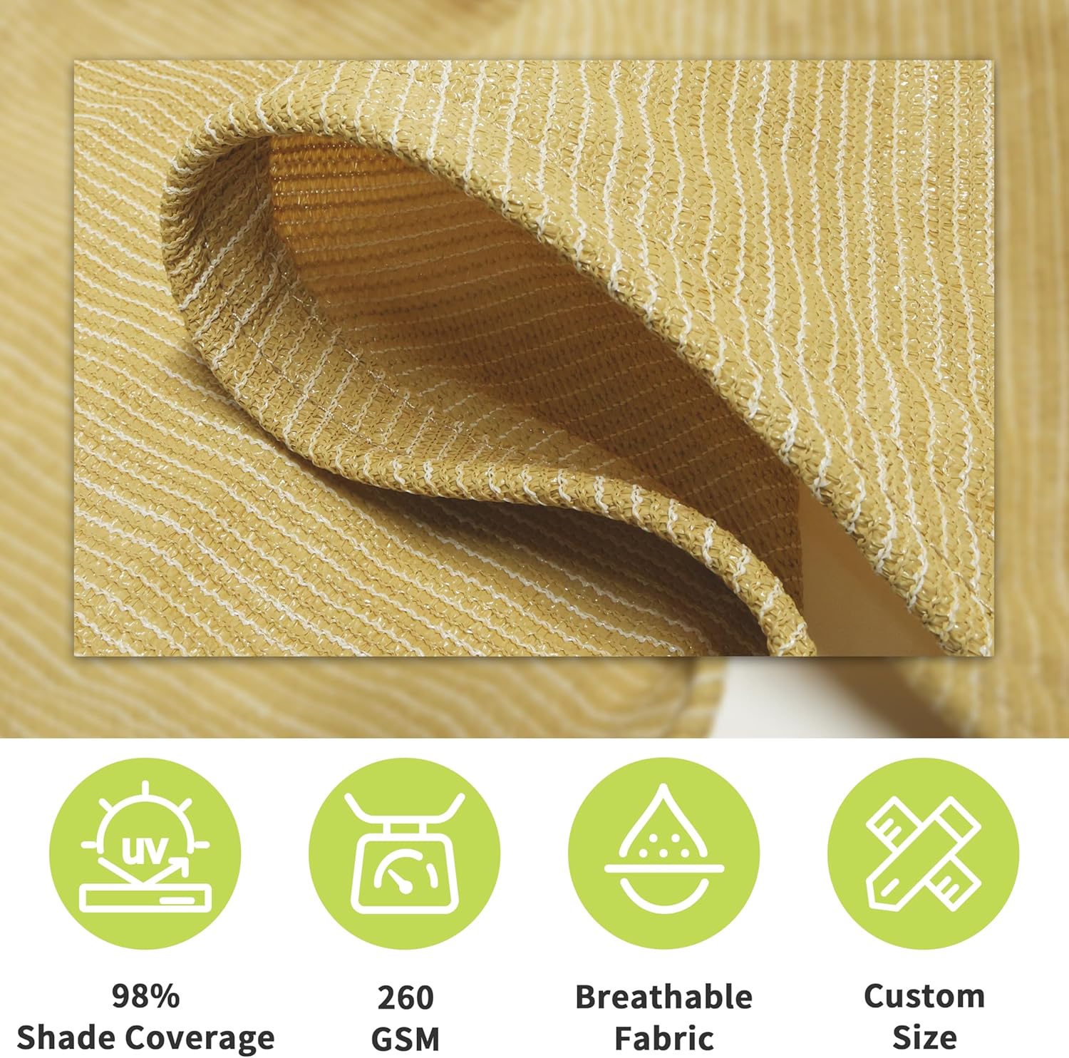 - Virgin, UV Stabilized Compound & Thick Material: Made from 260 GSM 100% virgin (non-recycled) HDPE material, the only sun shade sail on the market with this premium fabric. Our virgin HDPE fabric has undergone 20,000 hours of laboratory UV testing, proving it to be 70% more durable than recycled HDPE when exposed to the sun. Treated with a UV stabilized compound, it prevents drying, tearing, and fading, significantly extending its lifespan