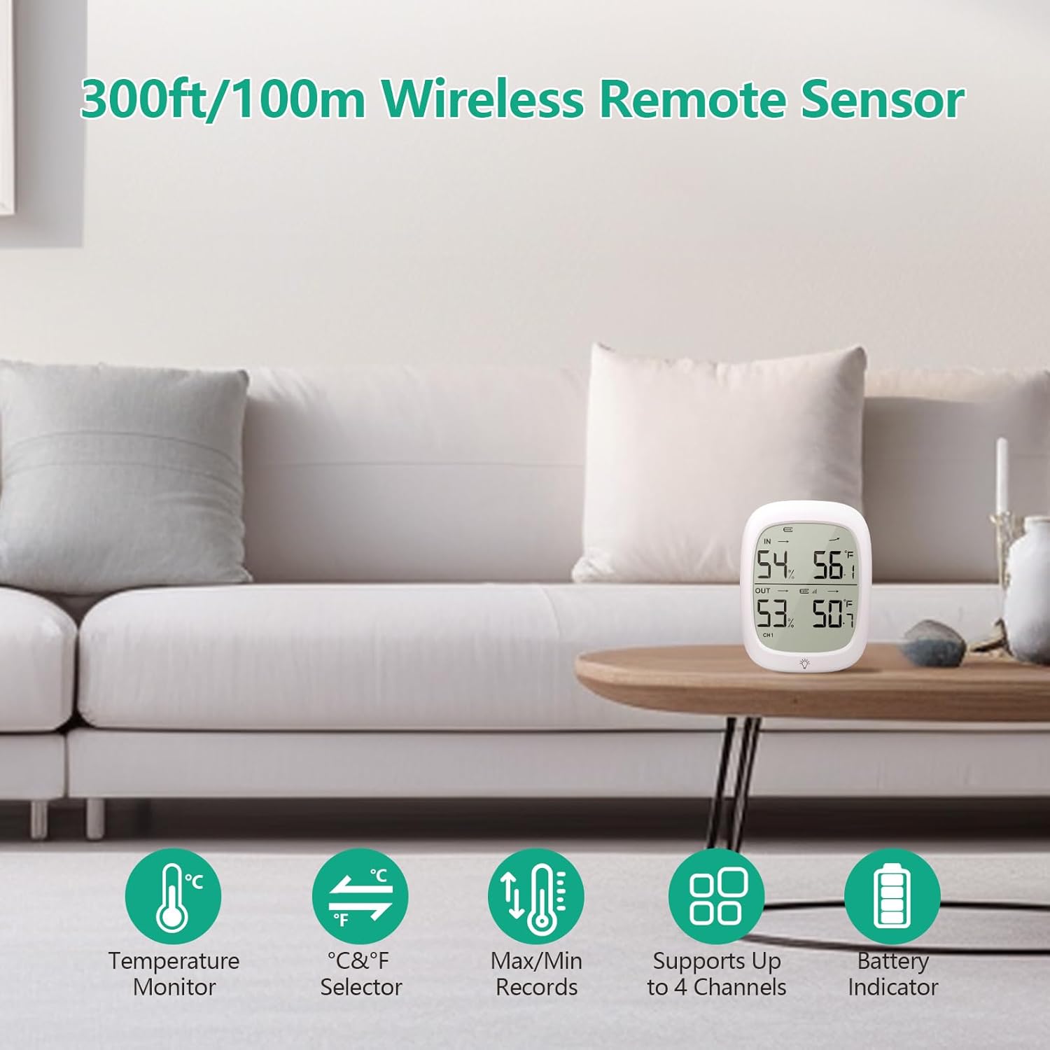 - šÆšÆš¬šš§ š§šæš®š»ššŗš¶ššš¶š¼š»: Outdoor wireless temperature humidity accurately measure temperature and humidity up to 330 ft away, can penetrate obstacles. Temperature and humidity monitor continuously transmits real-time data, such as current temperature, humidity, and battery status, to the main unit at regular intervals, providing users with robust and dependable data support.