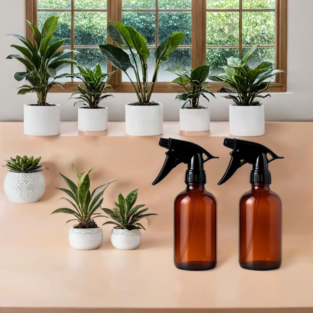 2 Pack Amber Glass Spray Bottles – 8oz Refillable Mini Bottles for Essential Oils, Perfumes, Serums, and DIY Skincare – Durable Small Amber Containers with Spray