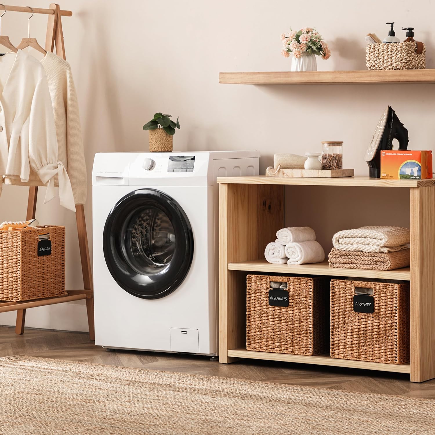 UBBCARE 4 Pack Wicker Basket, 13×13 Storage Cubes with Label, Foldable Cube Storage Bin with Handle, Square Storage Basket for Shelves, Woven Paper Rope Basket for Organizing, Caramel