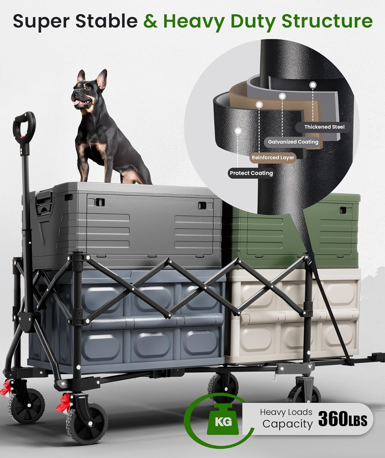 - Heavy-Duty up to 360 Pounds: Built to last, the wagon cart boasts a robust frame that can support up to 360 pounds of weight. This makes it ideal for heavy-duty tasks, whether you're moving items, especially some large and long items around the house, carrying supplies for your garden, or packing for a camping trip
