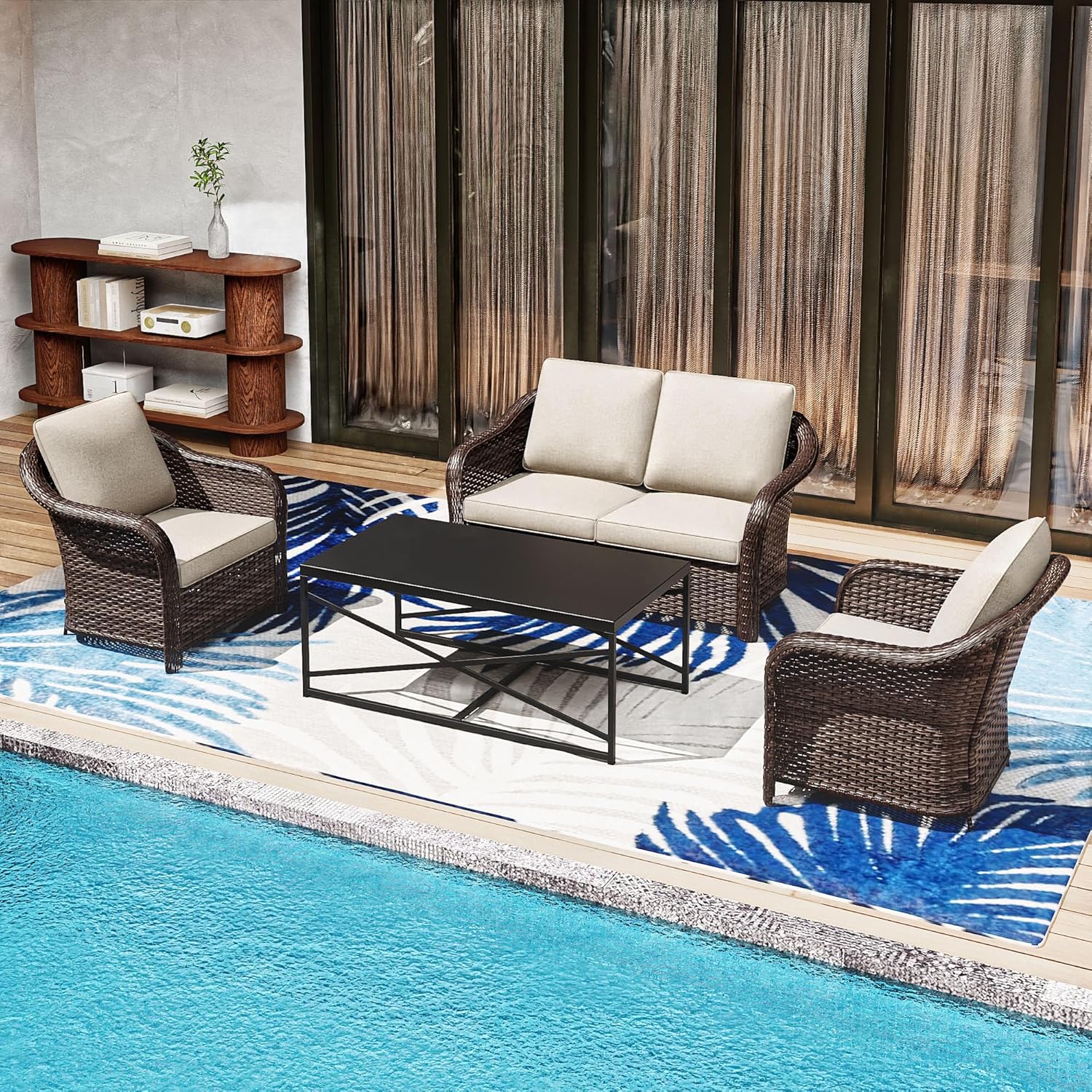 - Sturdy and Durable: The outdoor furniture set is made of steel frame and PE wicker, ensuring that it will be more sturdy. Fade-resistant fabrics of cushions is stain & fade resistance, tear & wear resistance