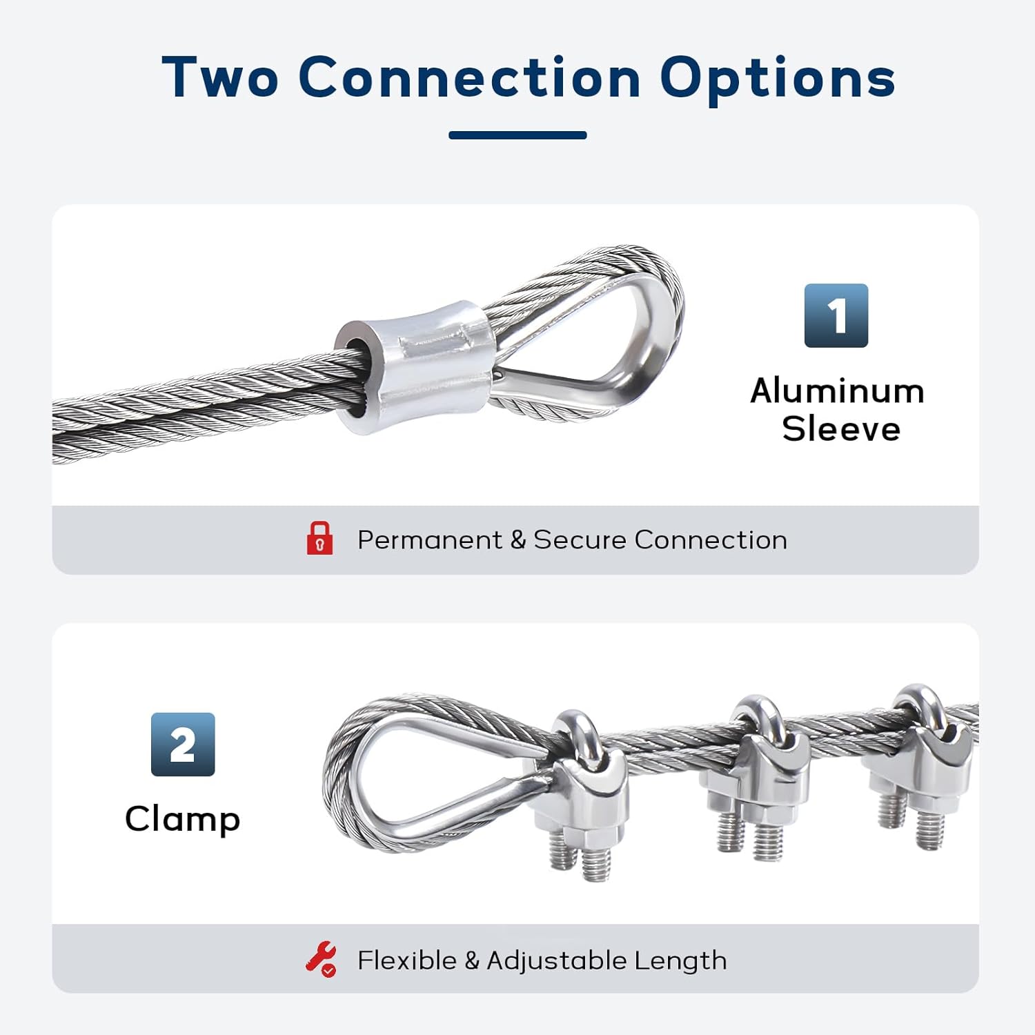 - Complete Kit for Quick Installation: Includes a sharp yellow cable cutter, 12 wire rope clips, 12 thimbles, 24 crimping sleeves, and 1 socket wrench. This kit provides all the essential tools needed for a quick and easy setup, saving you time and effort