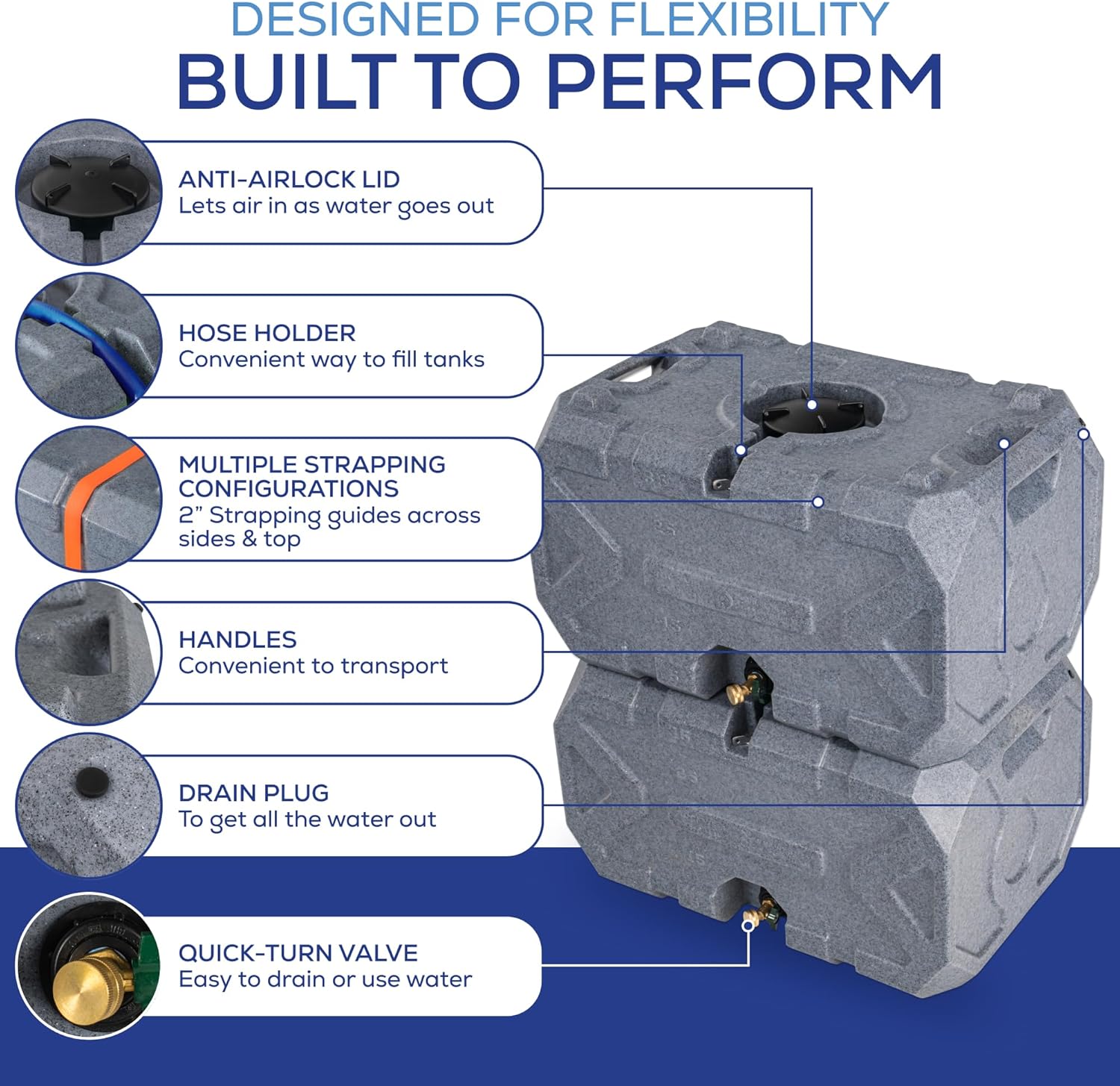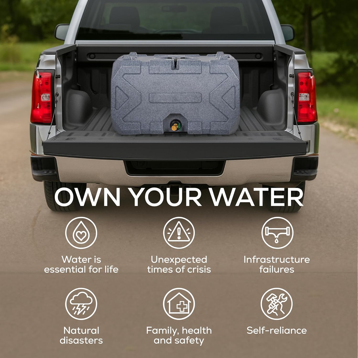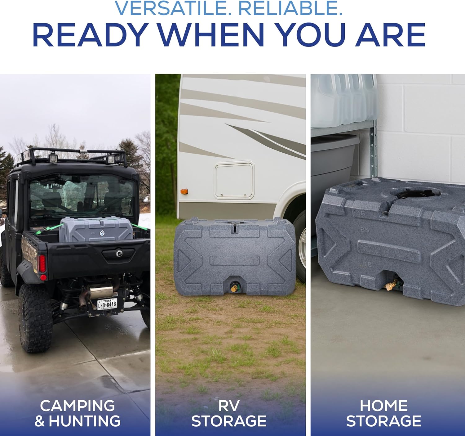Exodus 35 Gallon Water Storage Tank by Rockwell Products | Emergency Water Storage Container | Stackable, BPA Free, Made in The USA (Granite)
