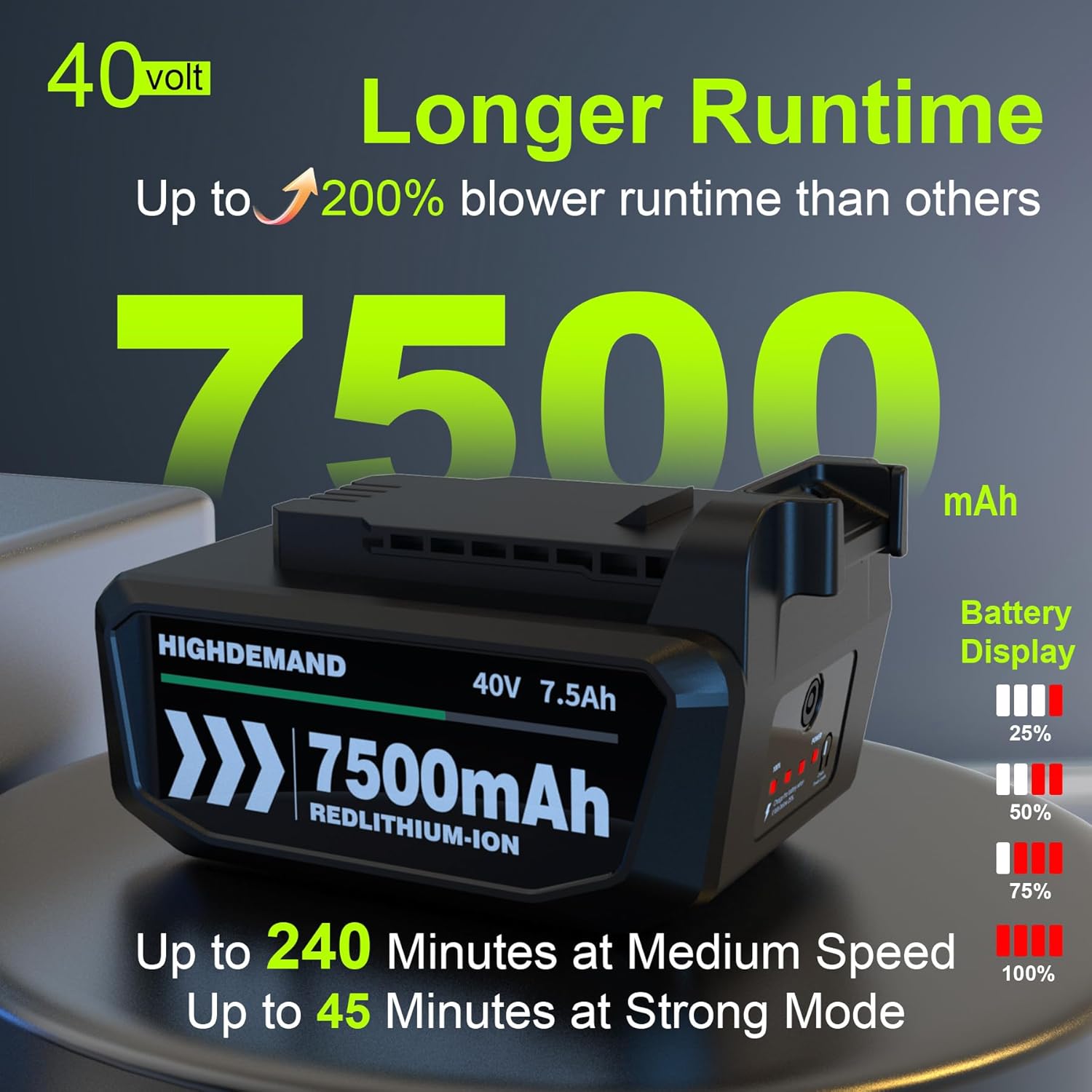 - Longer Running Time: Our leaf blower cordless with battery and charger features an impressive extra long running time of up to 240 minutes at Medium Speed,up to 45 minutes at Strong Mode. Equipped with a high-capacity 7.5Ah battery, this electric leaf blower ensures you can tackle any yard task without interruptions
