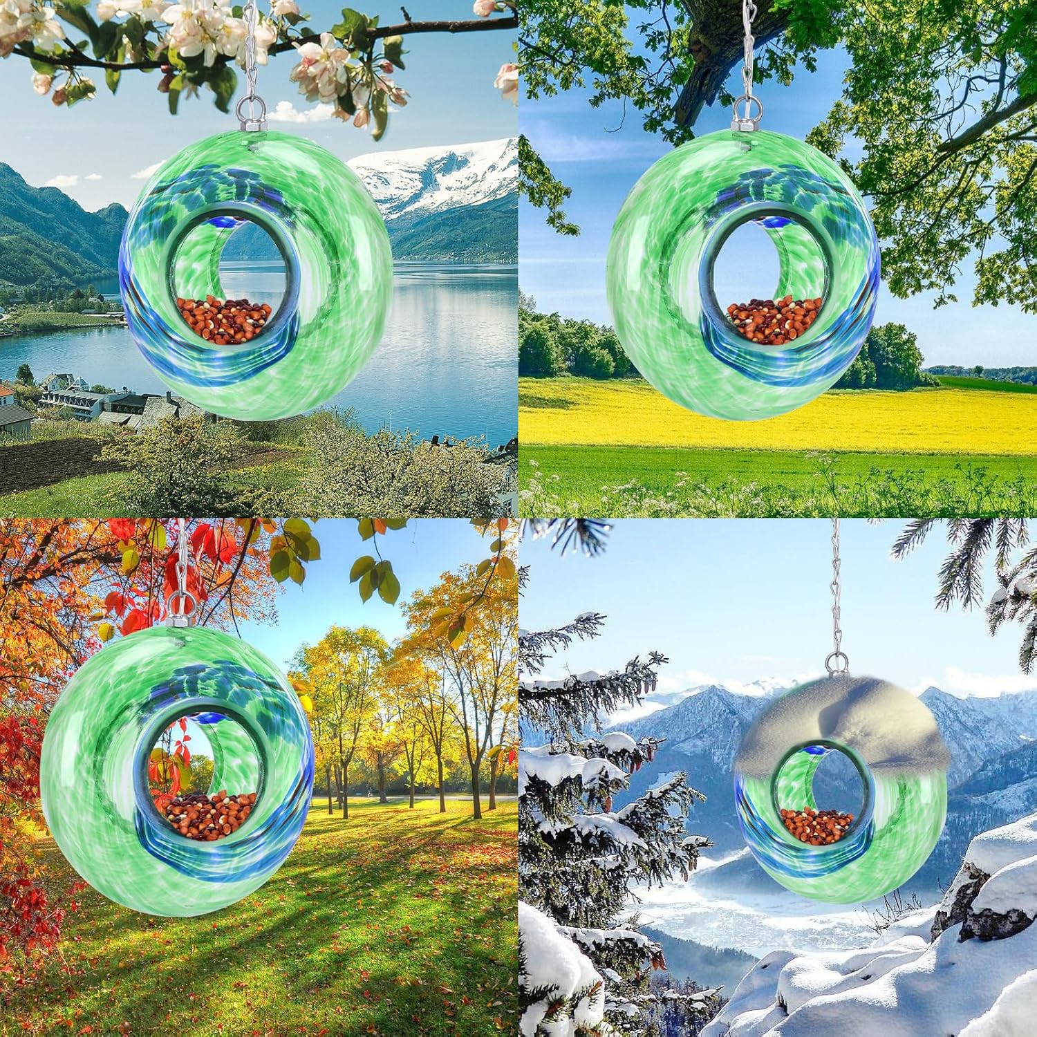 Yinns Glass Bird Feeders, Hanging Fly Through Birds Feeder for Outsiade, Solar Birdfeeder for Garden Decor Bird Lvoers Gifts, 8-Inch(Green)
